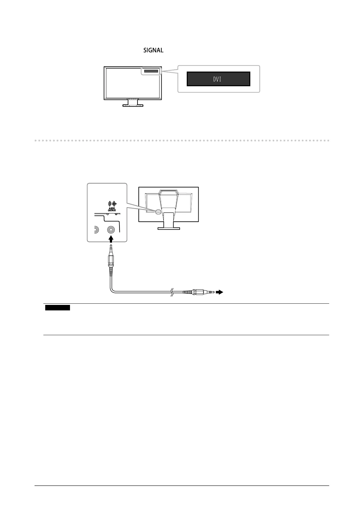 • Adjust the volume on the external speaker. You cannot adjust the volume using the control buttons on the monitor.