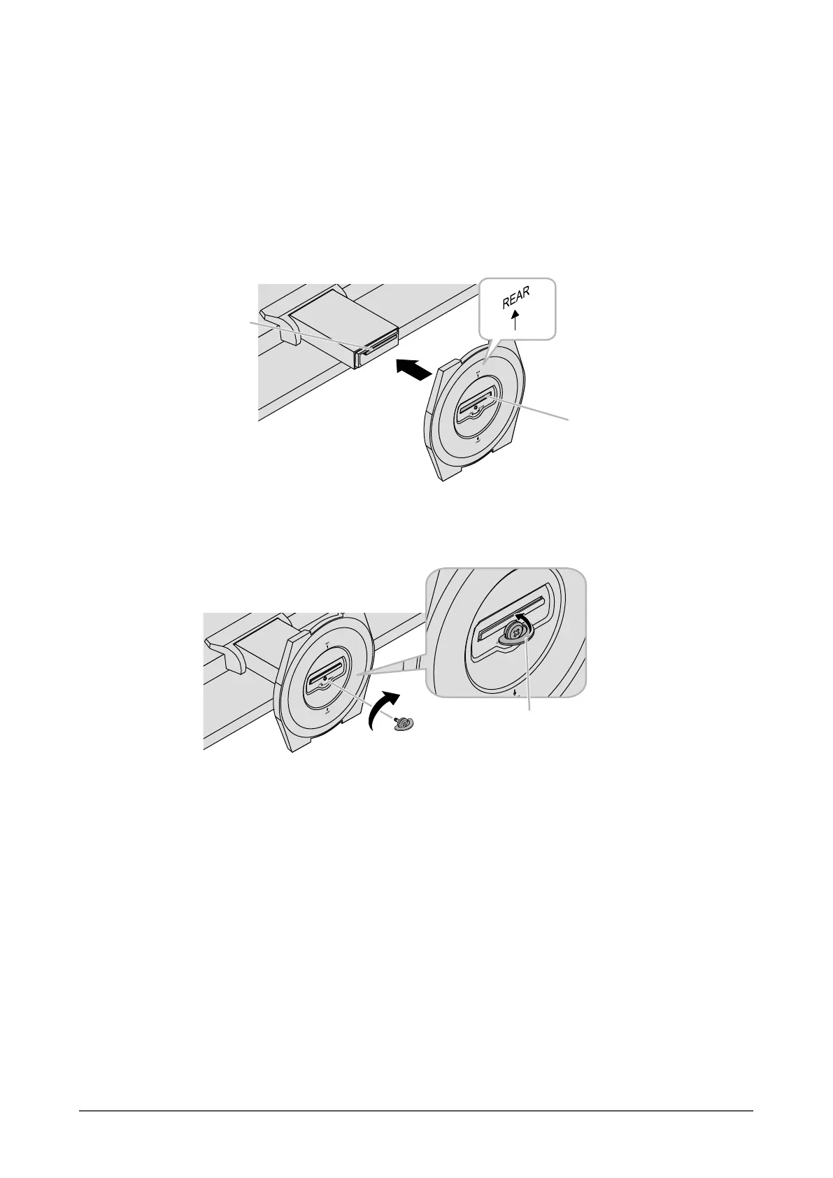 Hold the Stand base with the “REAR” side facing upward, align the hole (a) of