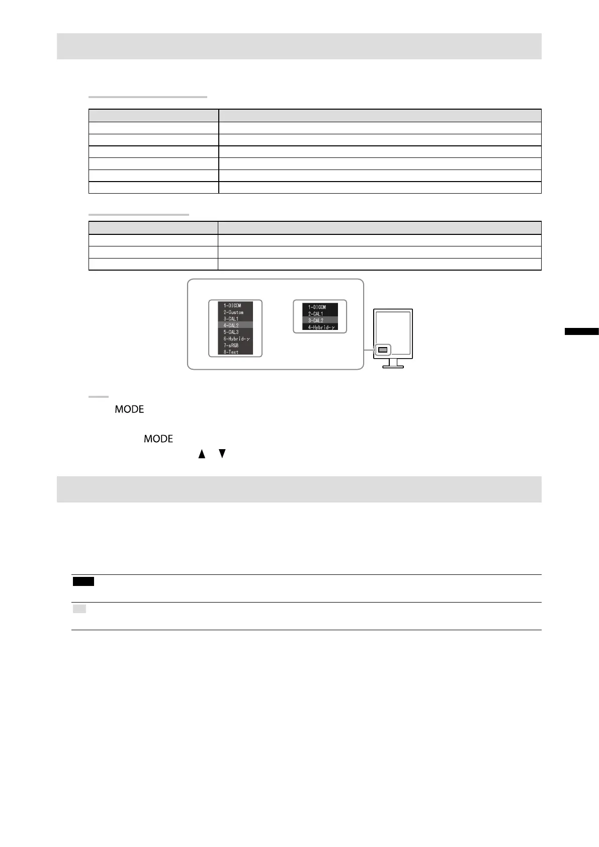 6-Hybrid-γ 自动识别同一屏幕上显示的黑白和色彩图像的显示区域,并显示相应的设定状态。