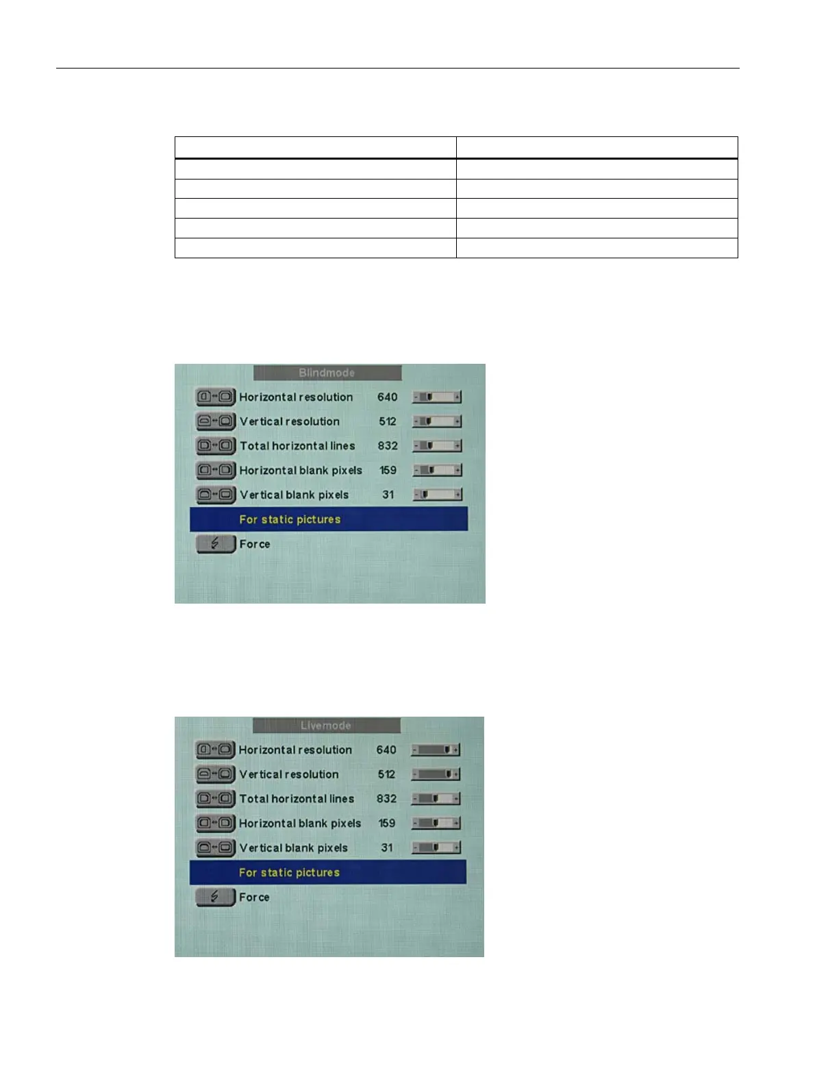 The setting values must be known in Blind mode, and these can then be entered. See "Blind