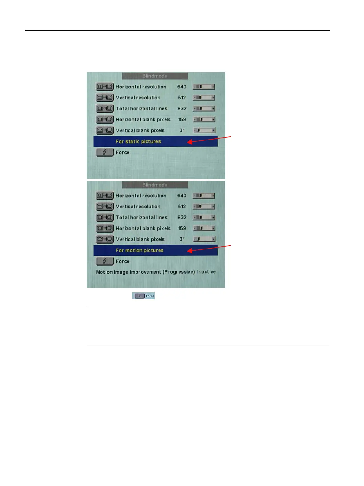 4. Select either "For static pictures" or "For motion pictures" in line 6 in the "Blind mode"