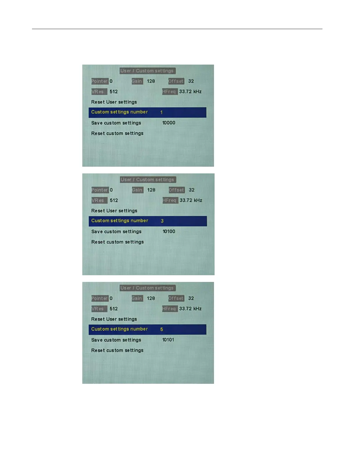 1. Up to five timings can be saved in "User / Custom settings".