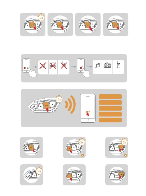 When in standby/playing music, press and hold <Phone/Power Button>,