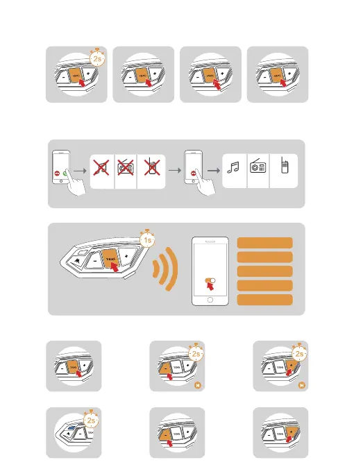 Interrupts Bluetooth music, FM radio and intercom when