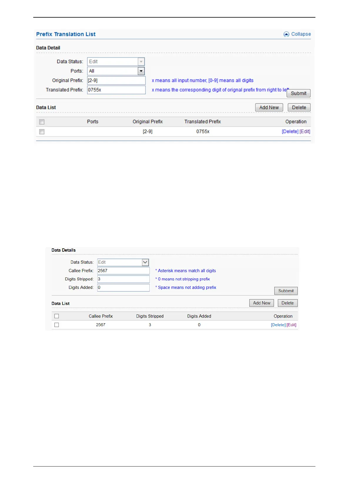 with prefix 2567, the system will stripped 3 digits, then add 0, the callee number
