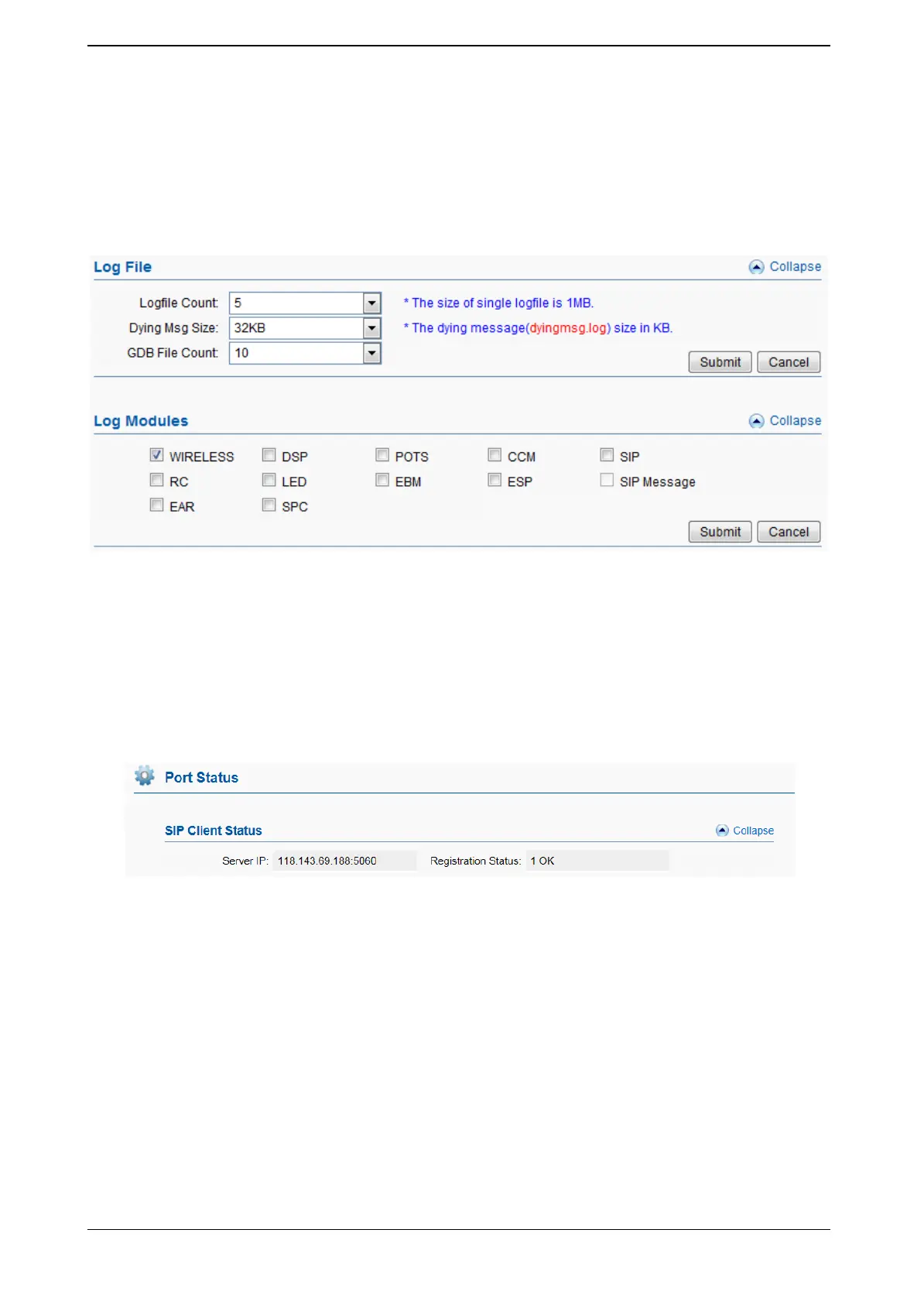 SIP Client Status displays the register status while device work with SIP