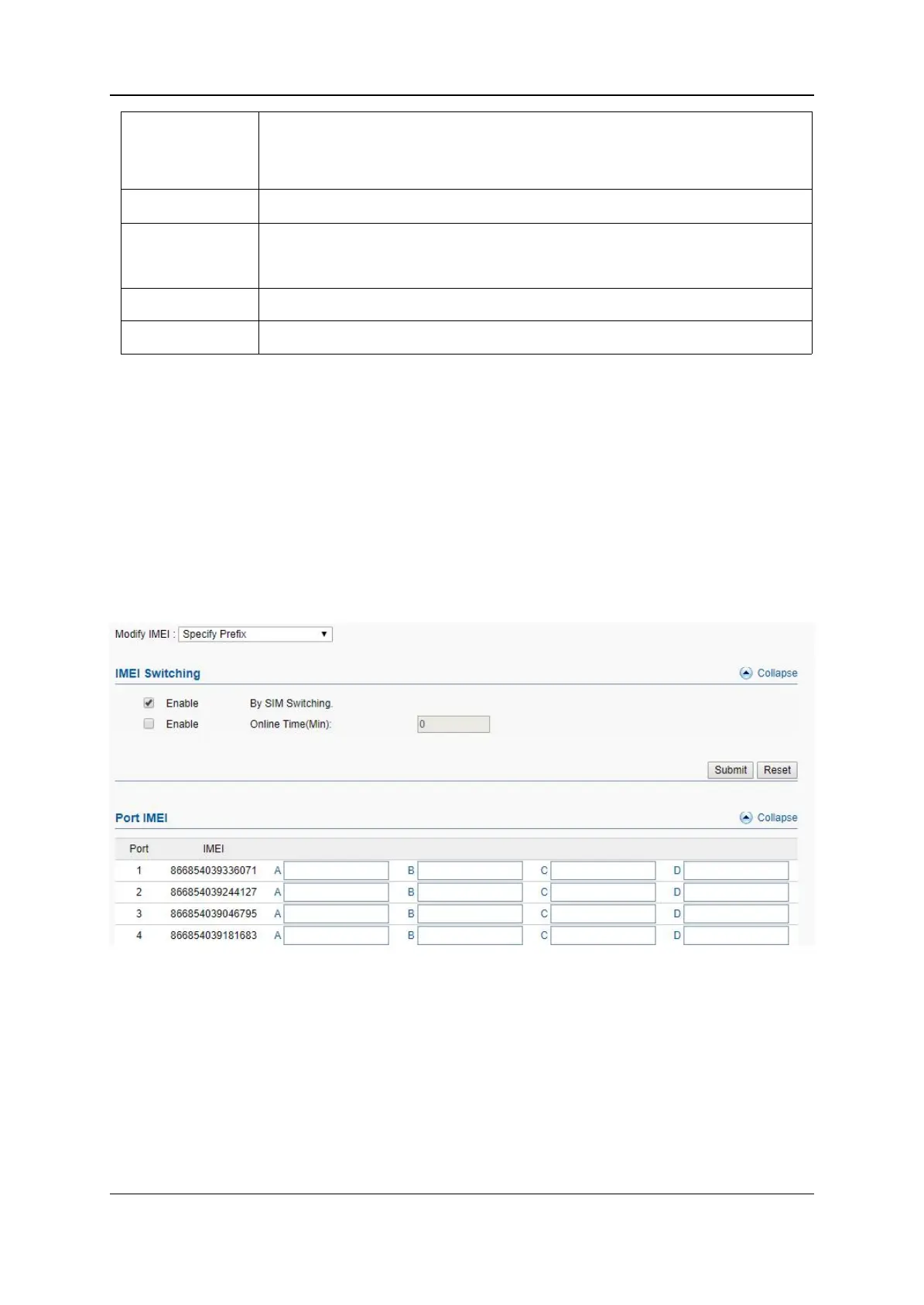 in the blank, the IMEI will changed when SIM switch(default), and also you can change the