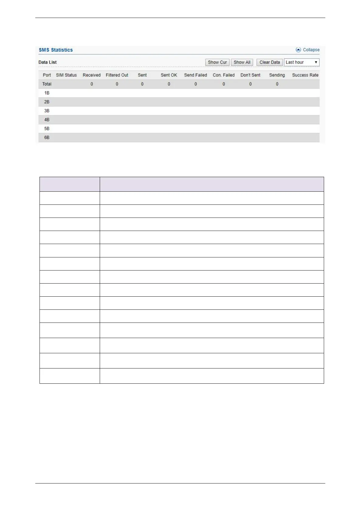 Traffic statistics shows the sim card data usage, includes total/day/last day/last hour data