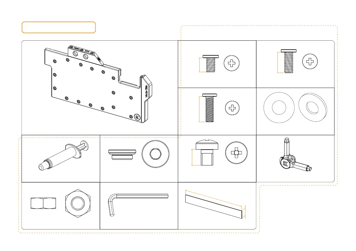 M3x4 DIN7985 Screw (2 pcs) EK-Loop Multi Allen Key (1 pc)