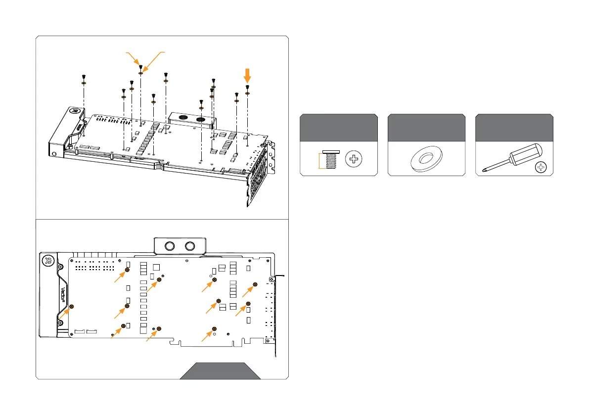 Use eleven (11) M2.5 x 4 AX1 Screws and PVC washers to tighten