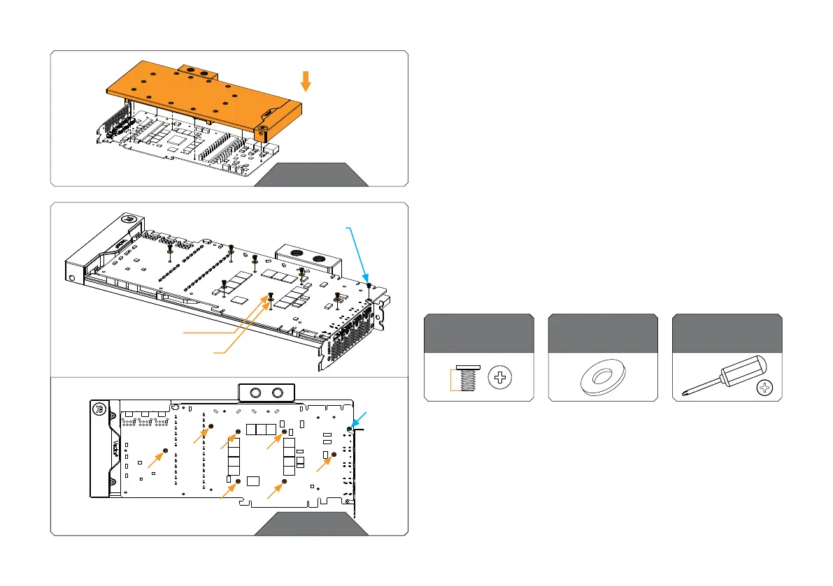 Use eight (8) M2.5x4 AX1 Screws and seven (7) PVC washers to
