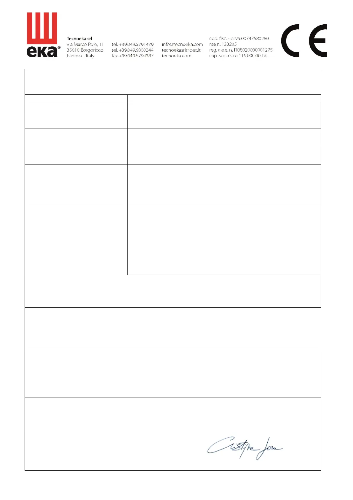 TECNOEKA Srl declares that the above mentioned products comply with all provisions