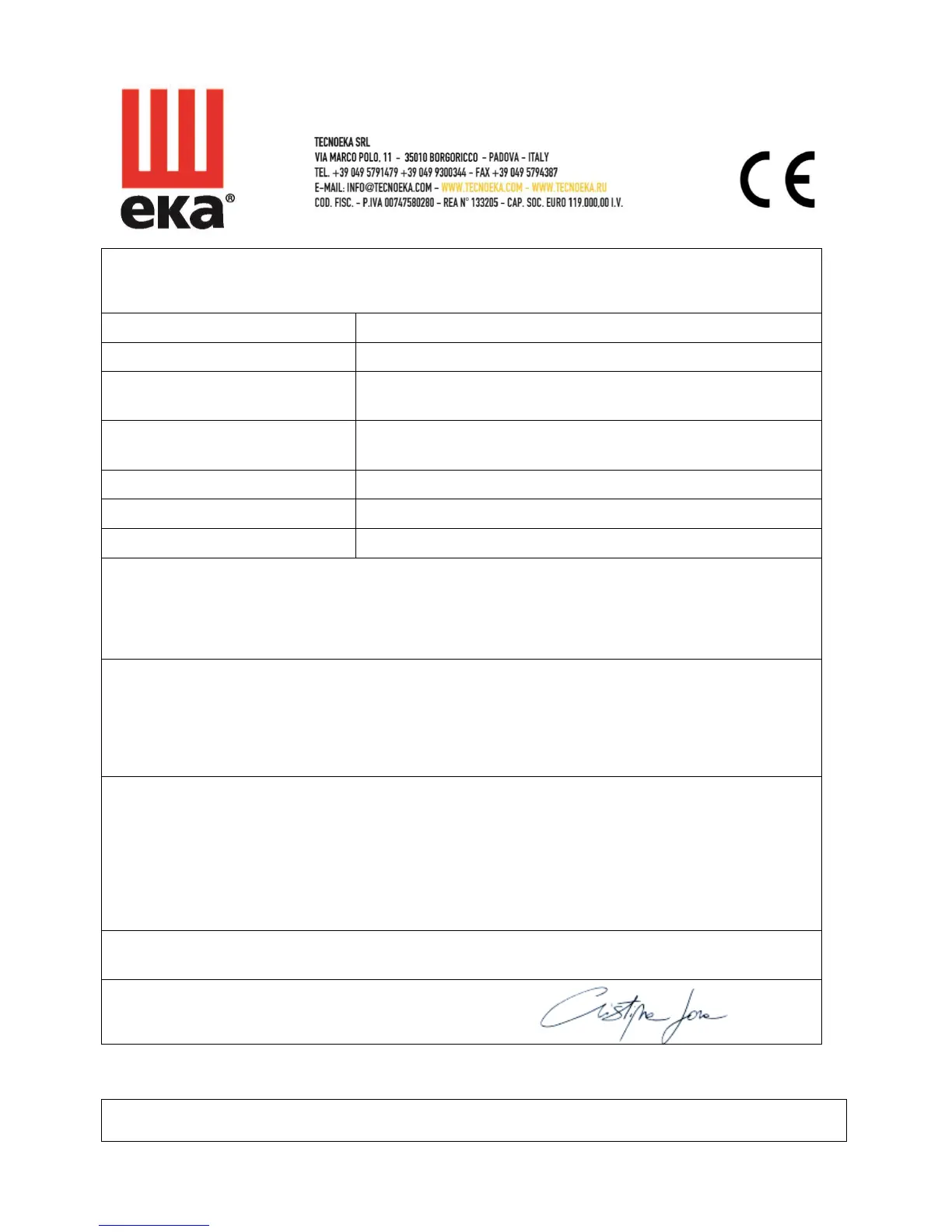 TECNOEKA Srl ___________________________________________________________ operating and instruction manual