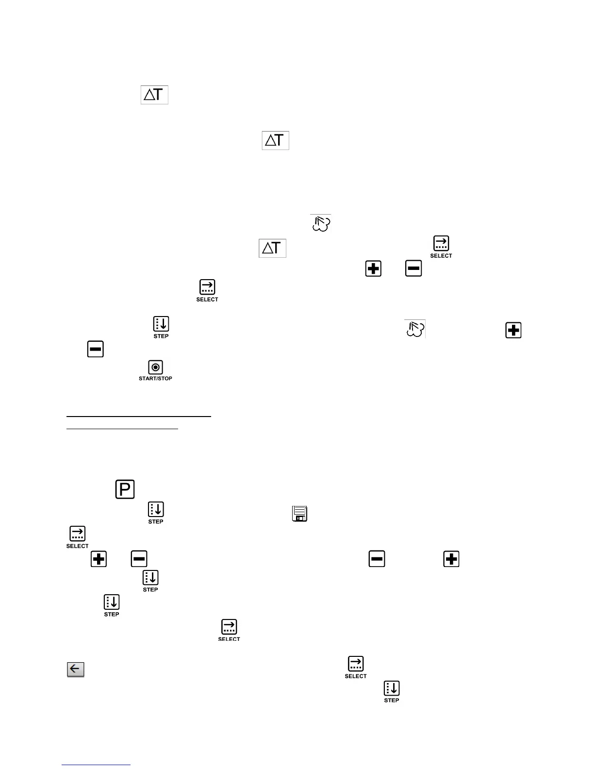After setting the value of the “DELTA T” parameter, use the “SELECT” key: the “%