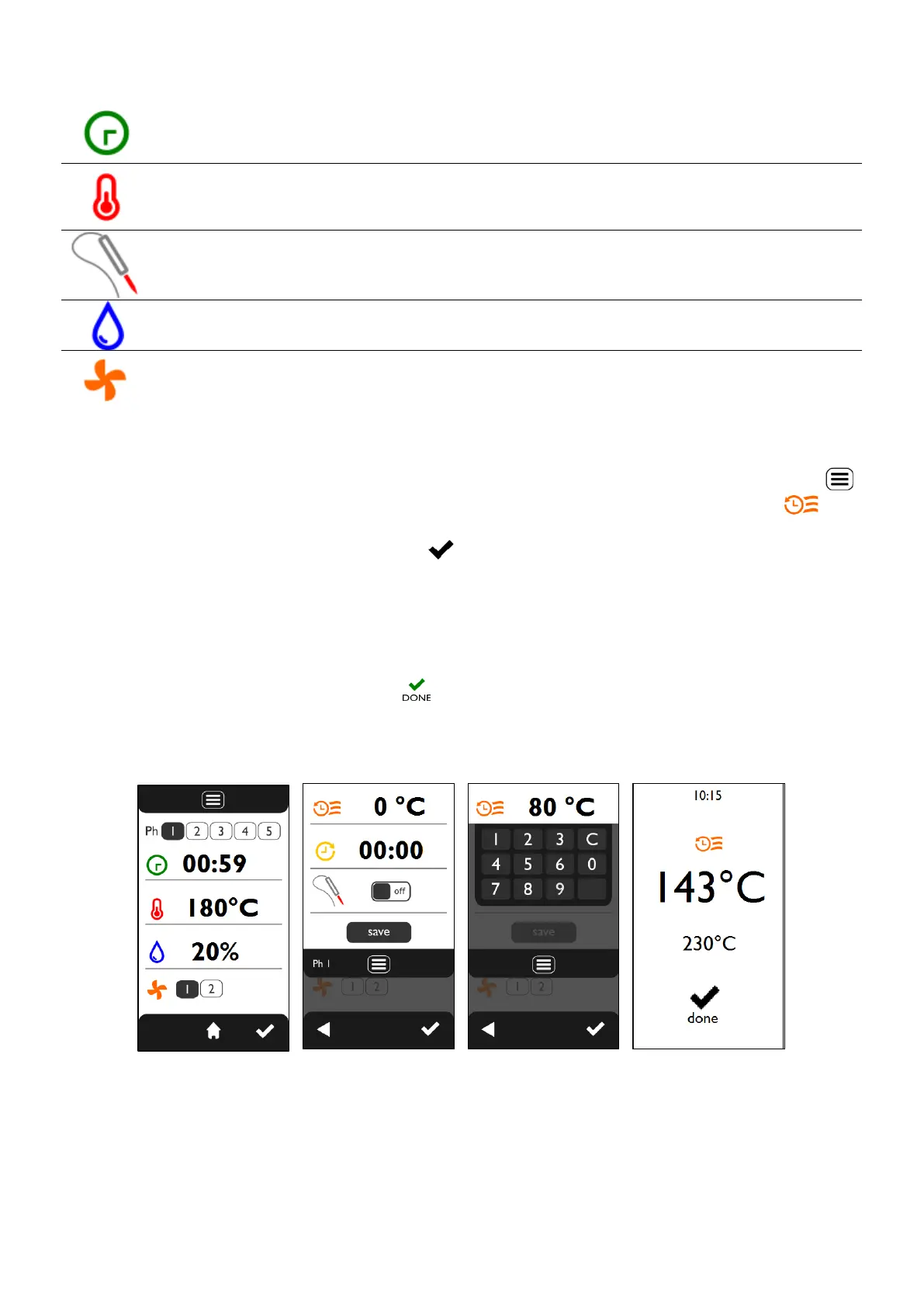 From the “COOKING PARAMETERS” screen (Fig.3), when “phase 1” is selected, touching the symbol