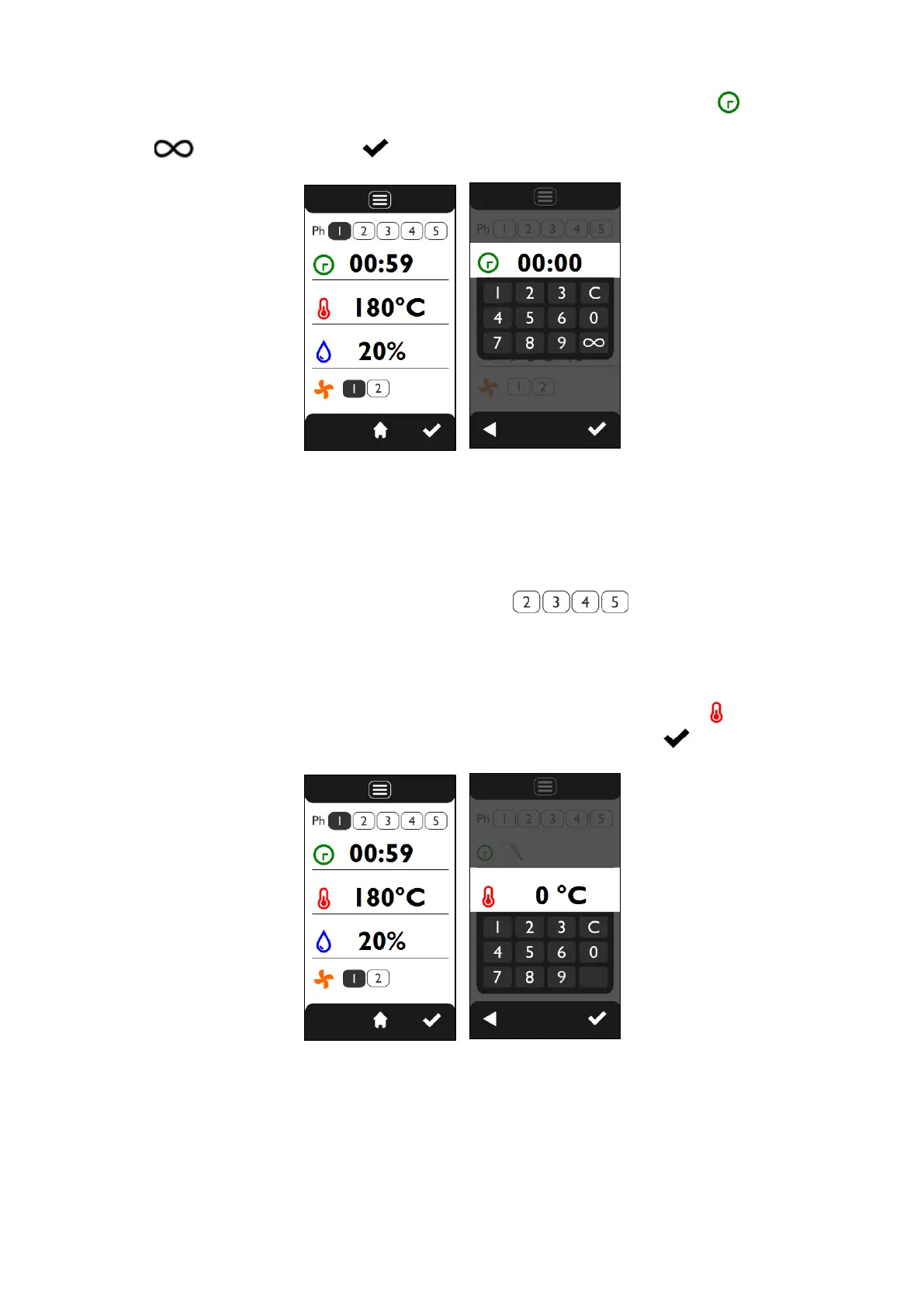 (“Ph 2”, “Ph 3”...), can be set by touching the symbols .