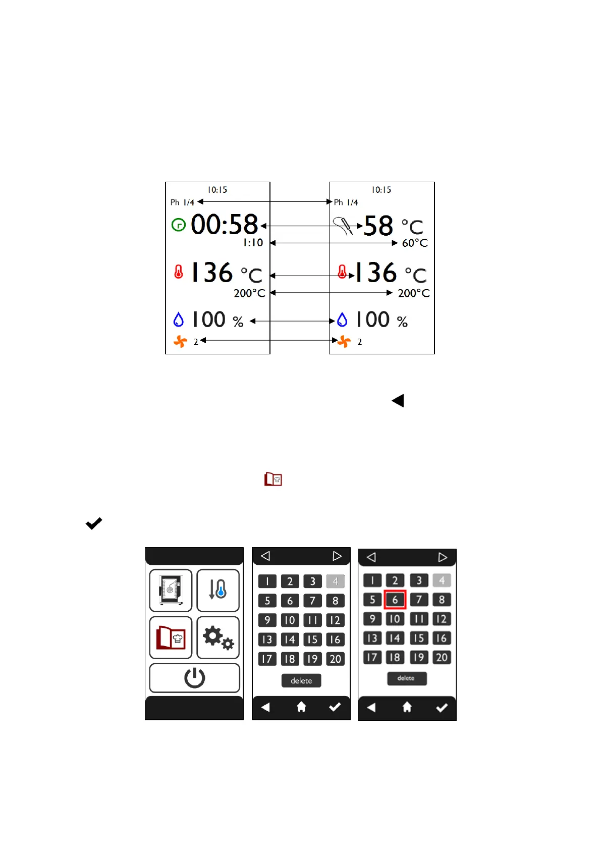 The parameter values can also be changed with the cooking cycle active. By touching any area of
