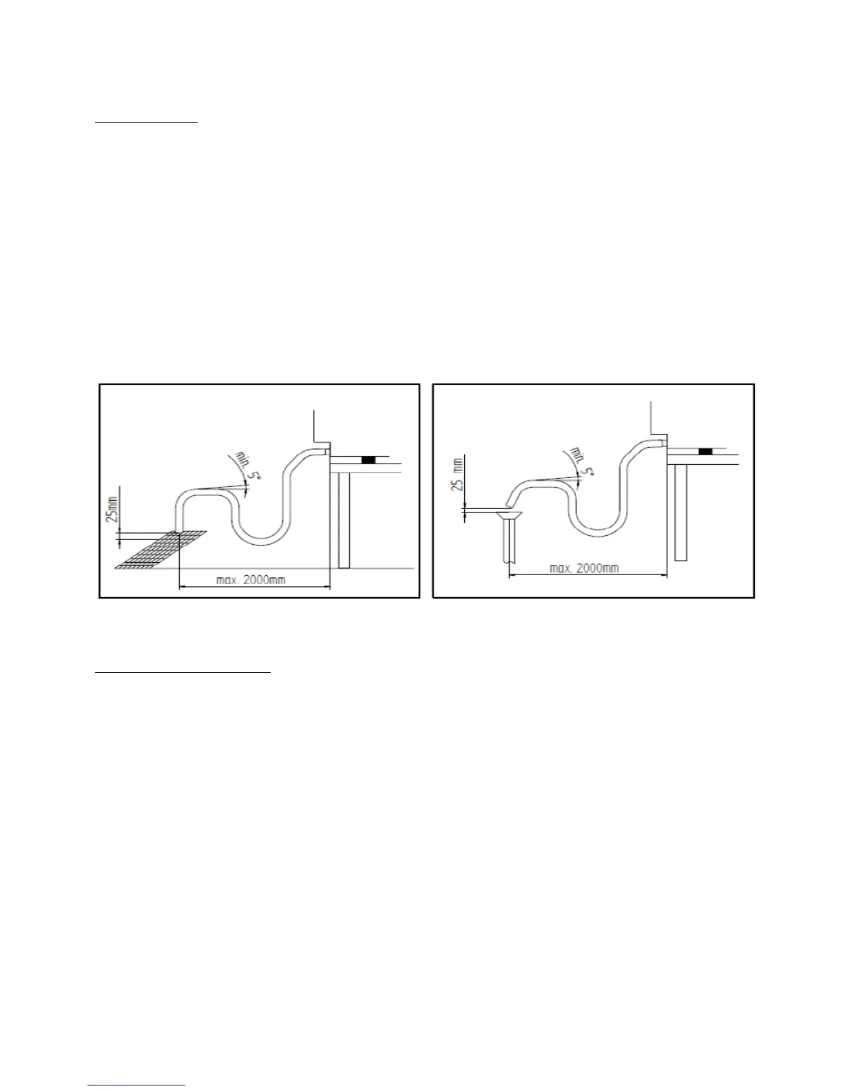 free air gap of at least 25 mm (distance between the drain line coming from the appliance and