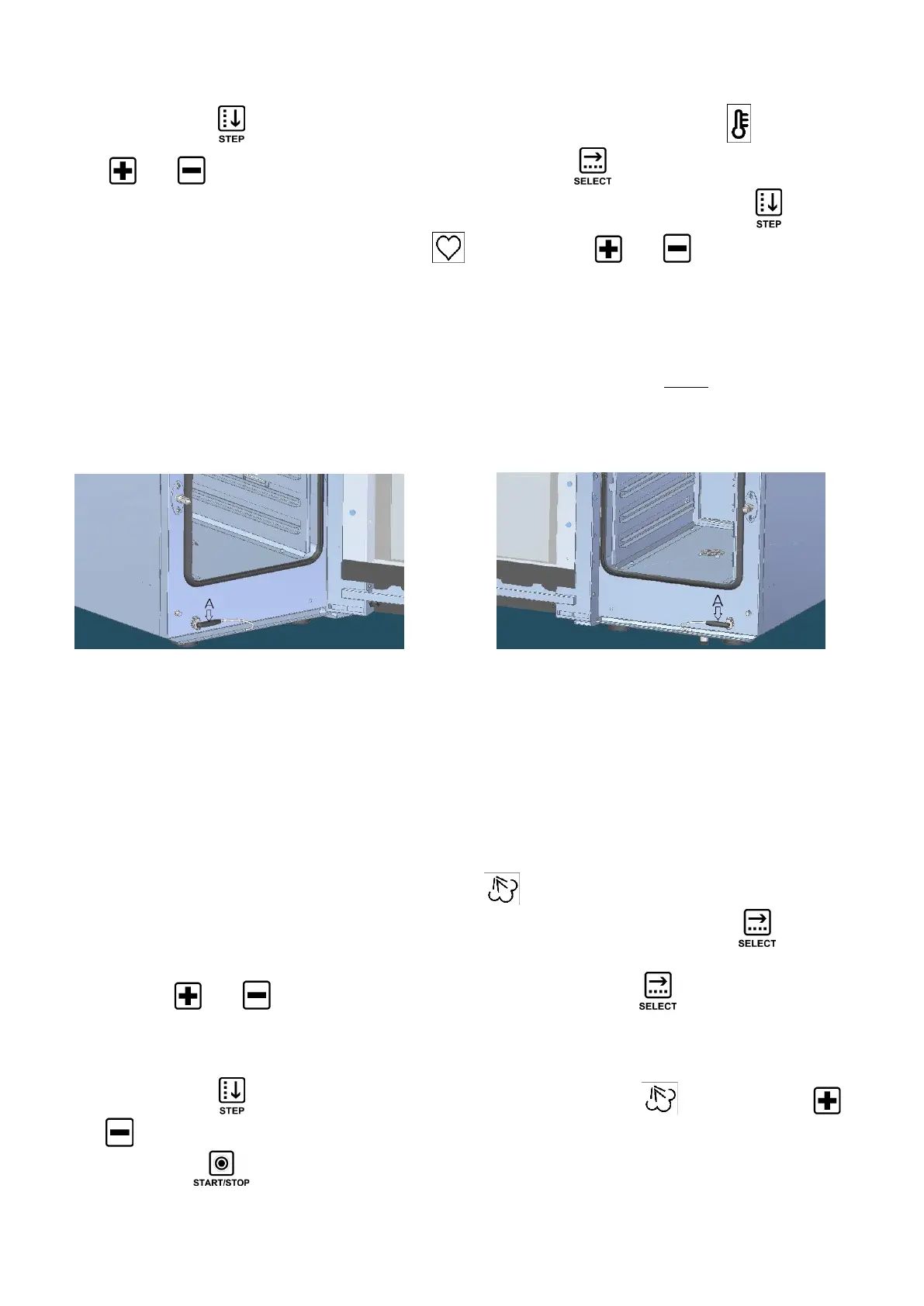 (the screen of the 3 different temperature parameters is displayed). Touch the “STEP” key to