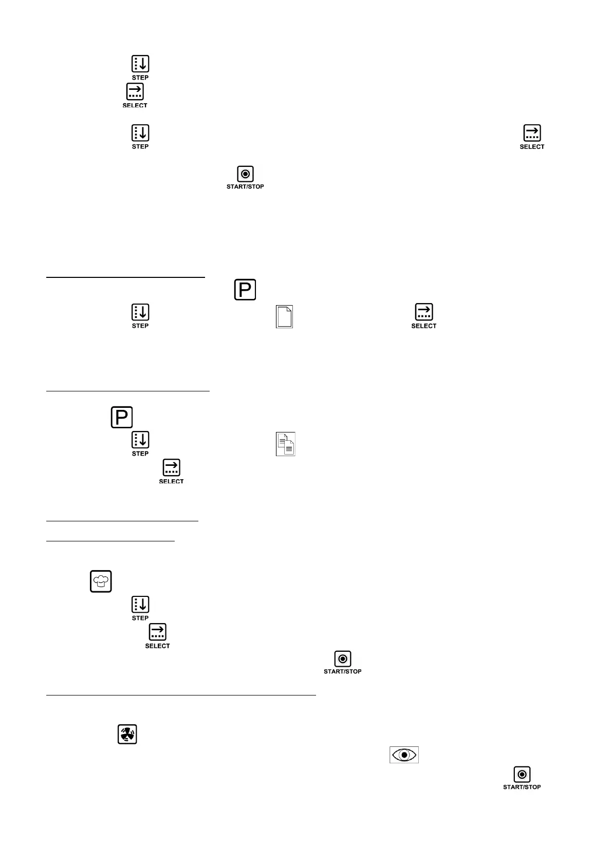 displayed. Use the “START/STOP” key to activate the cooking cycle.