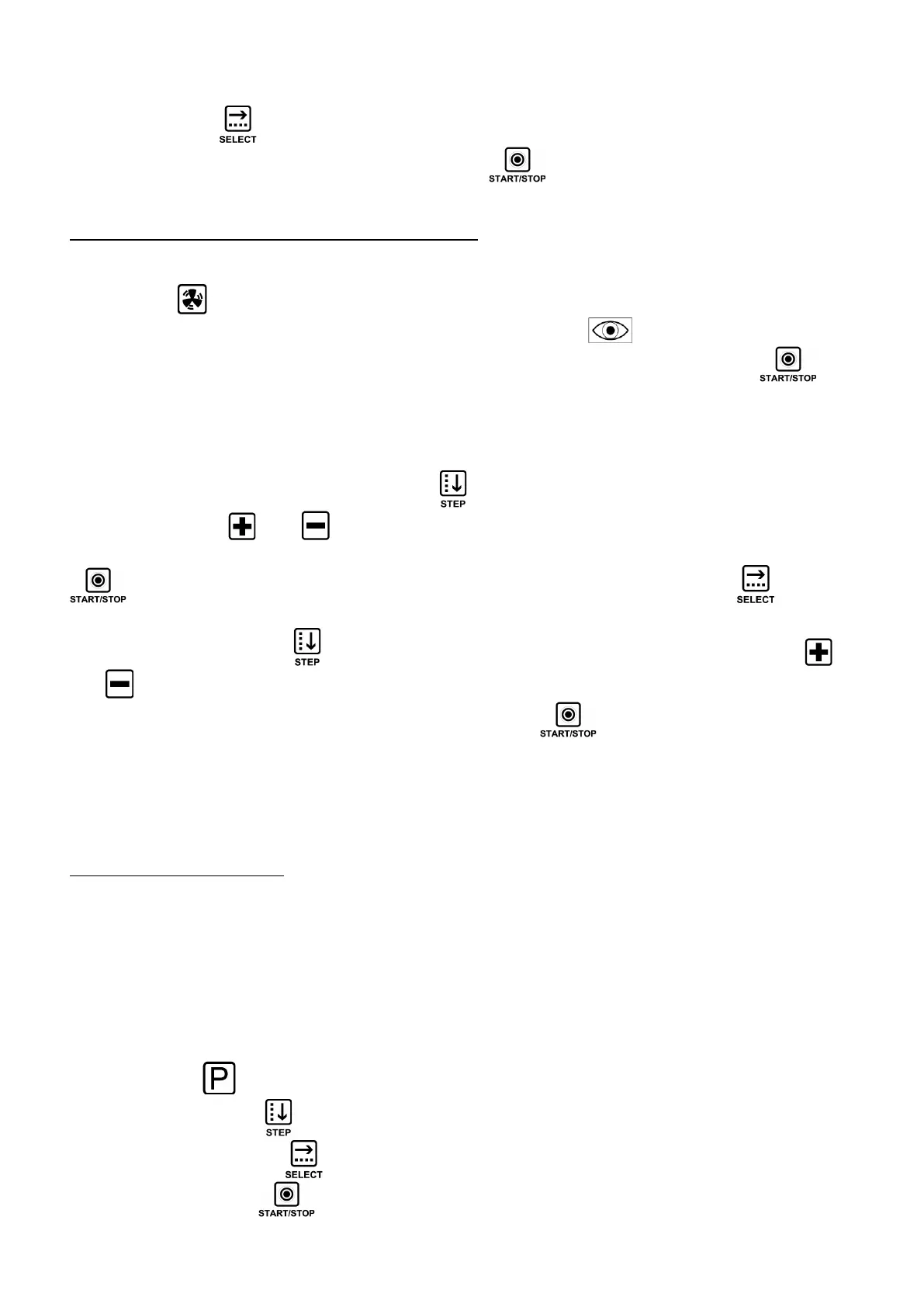 and a new cycle may be set: use the “STEP” key and choose the parameters to be modified