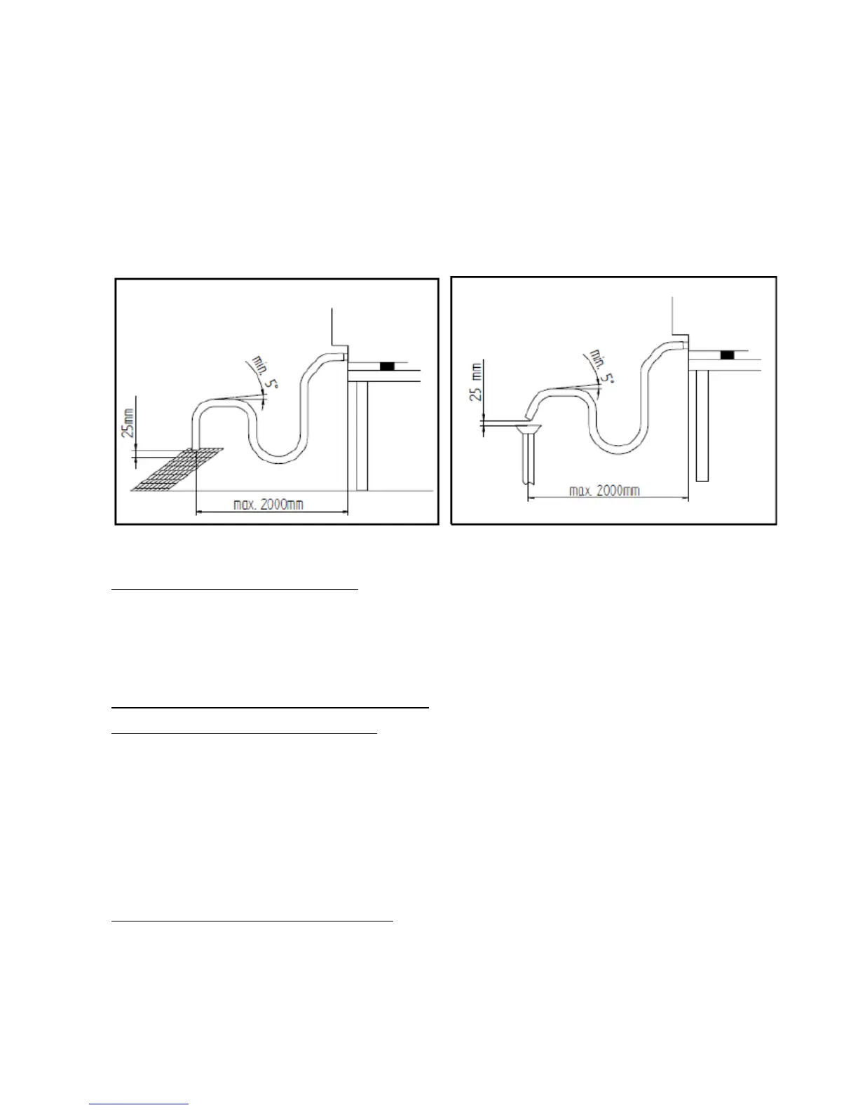 Furthermore, the minimum "air gap" must be 25 mm (distance between the drain pipe from