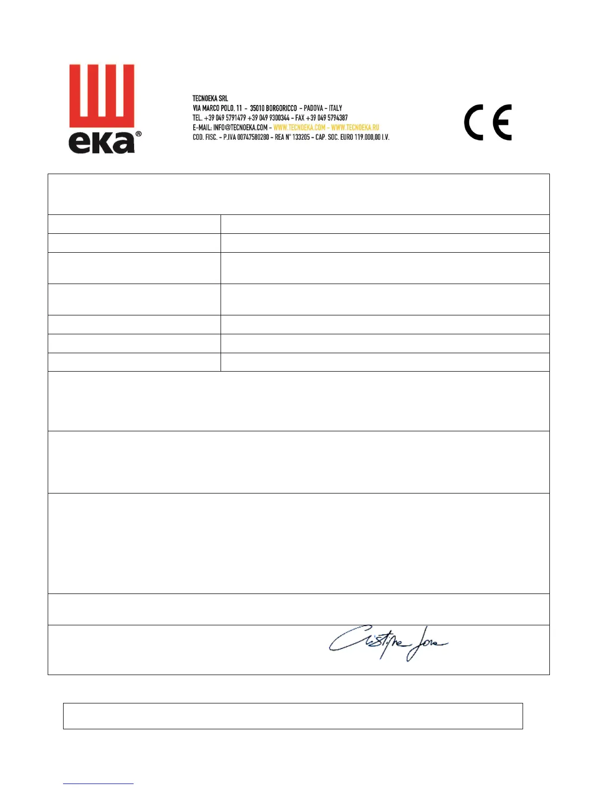 TECNOEKA Srl hereby declares that the above-mentioned products meet the requirements of the