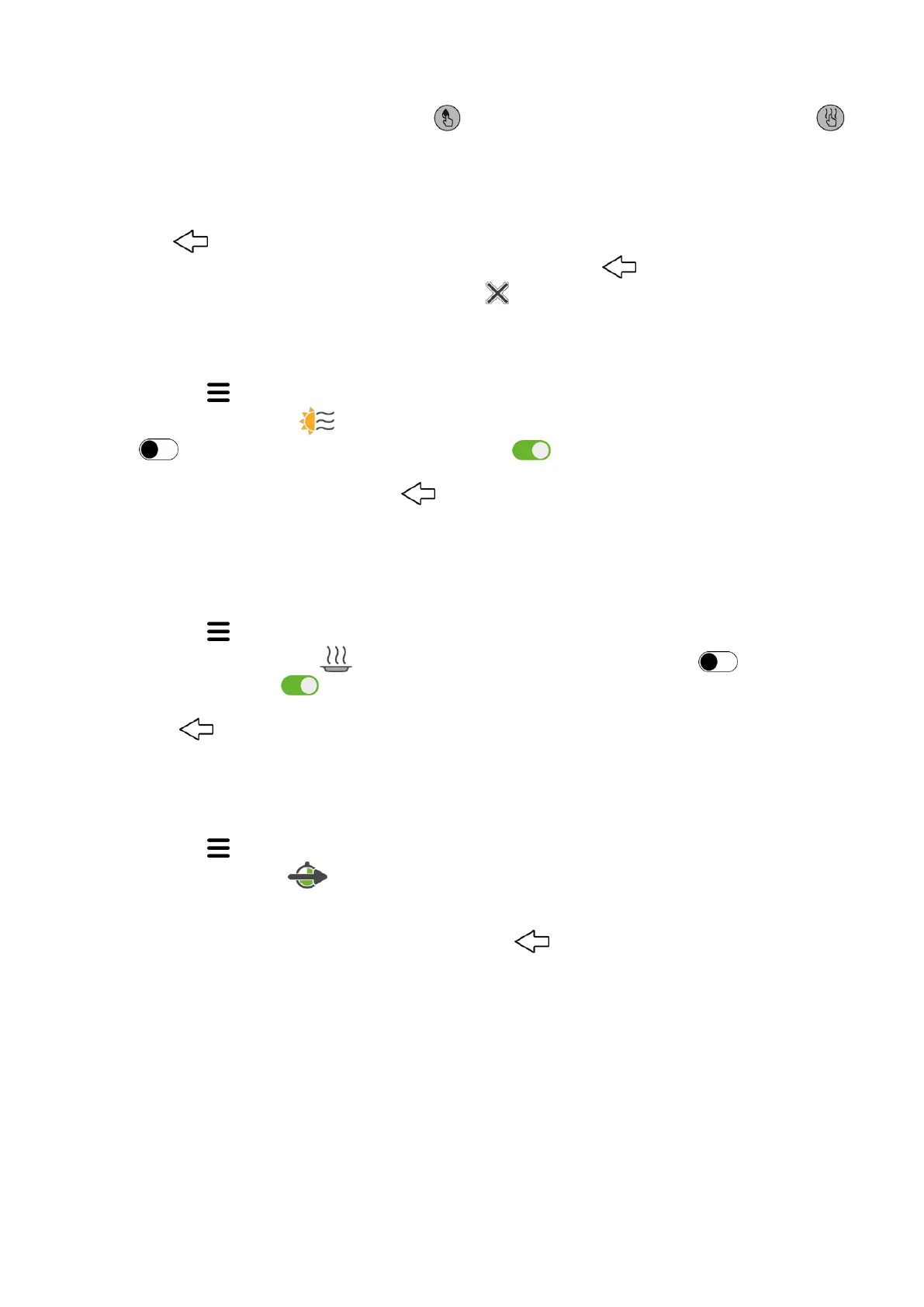 switch enables the function ( ); touching it again, disables it. Touching the “” symbol on the window