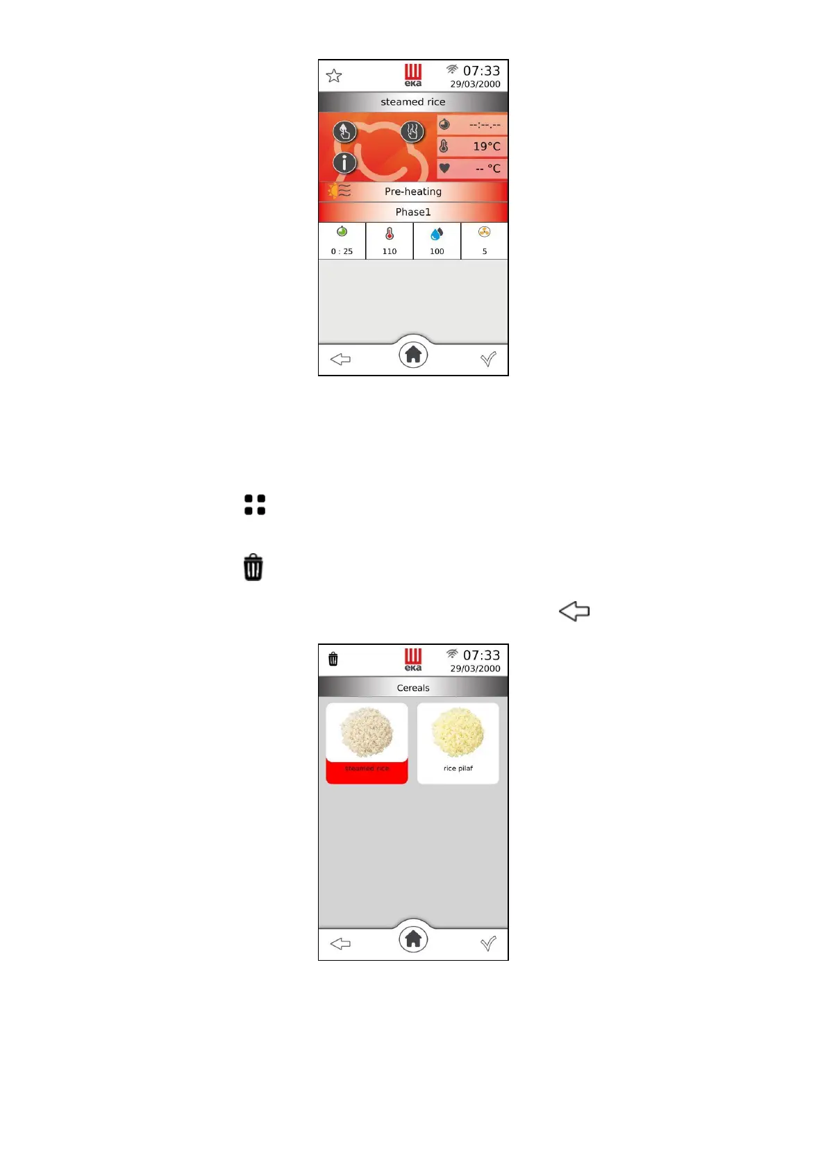 Touch the symbol and select the recipe you want to delete: the name of the recipe is
