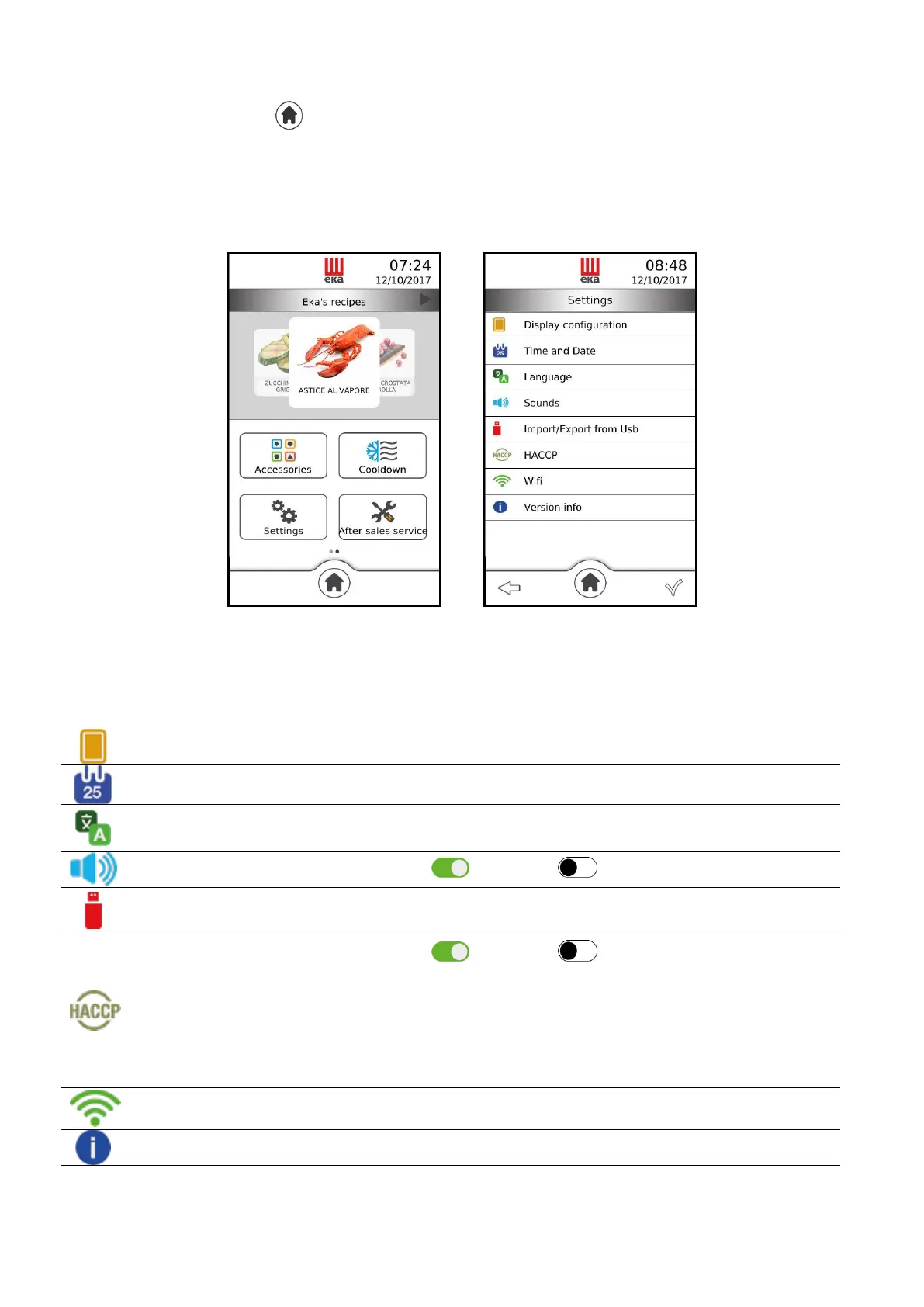 You can enable ( ) or disable ( ) the “HACCP” function.
