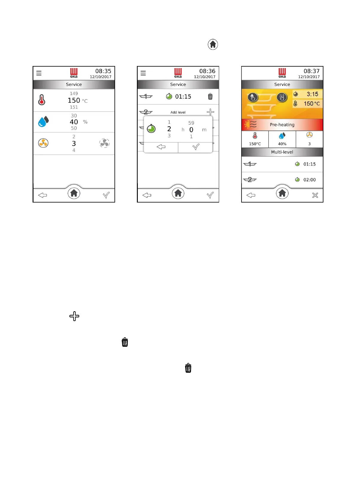 Touching the “” symbol starts the cooking cycle, the “add level” screen (Fig.31) appears with the