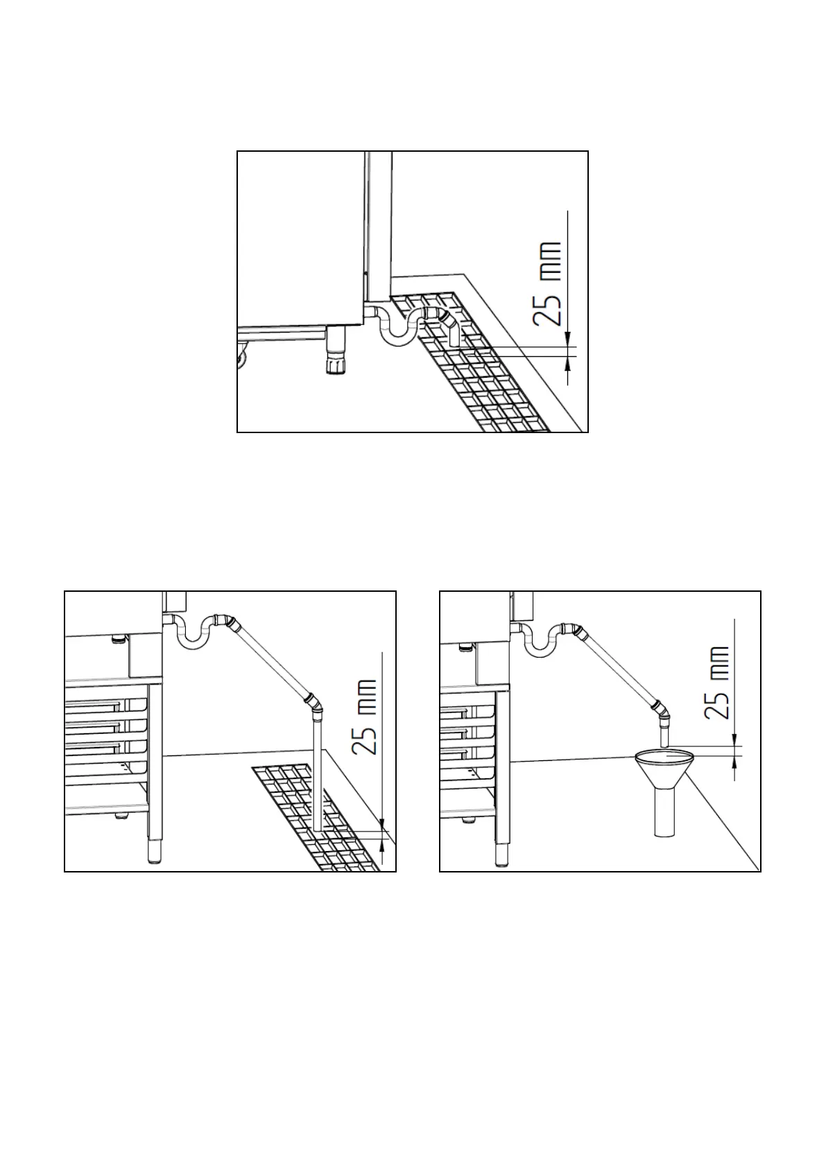 open drain) must be at least 25 mm.