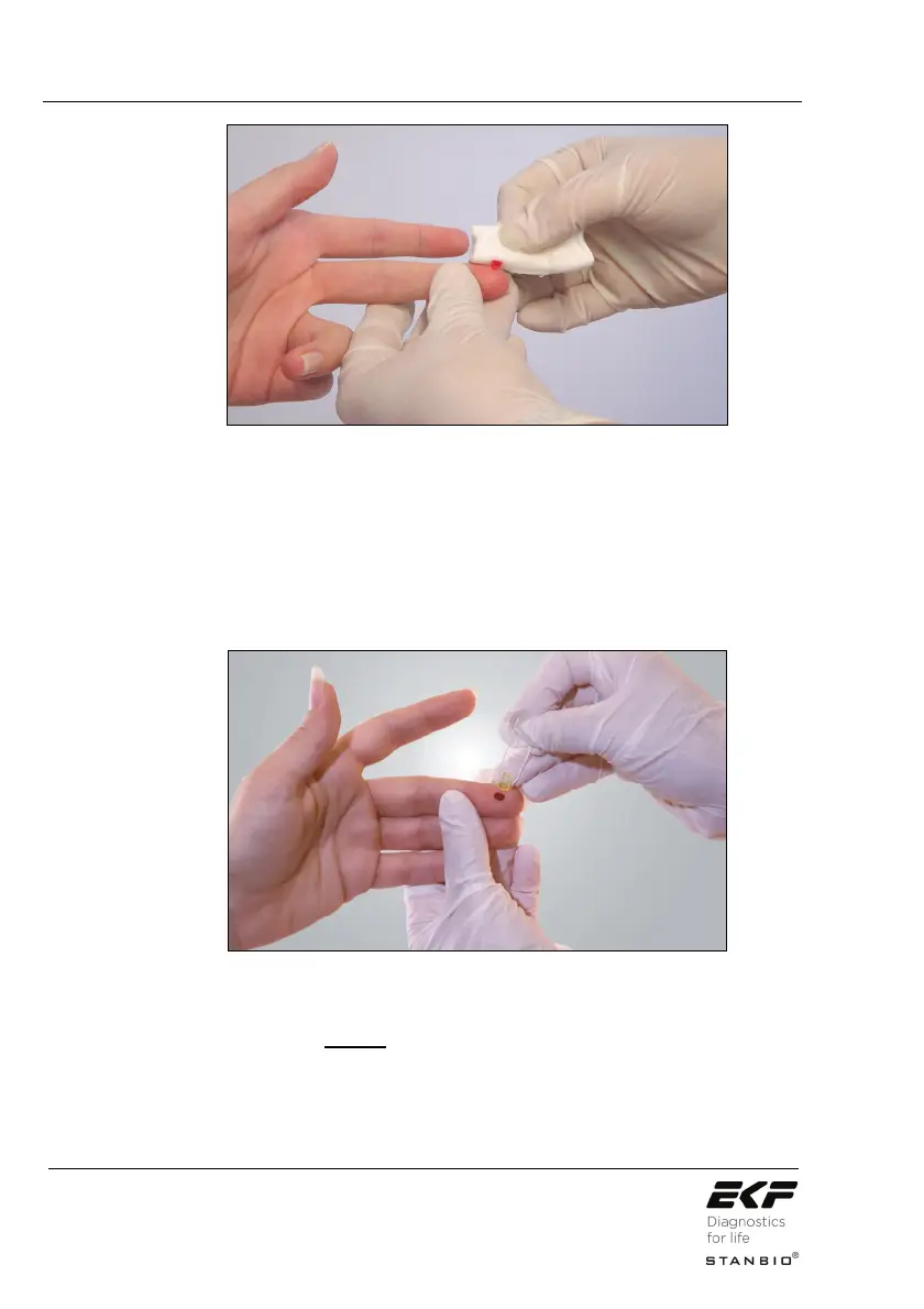 Illustration 12: Blotting the first drop of blood.