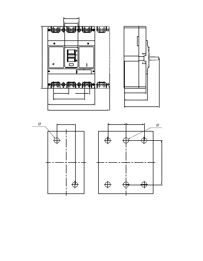 Overall and installation dimensions of VА-99М 1250 with electronic trip unit