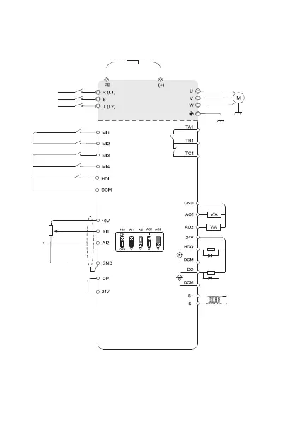 Figure 6. Wiring diagram for frequency converters VECTOR-100 0,4 to 7,5 kW