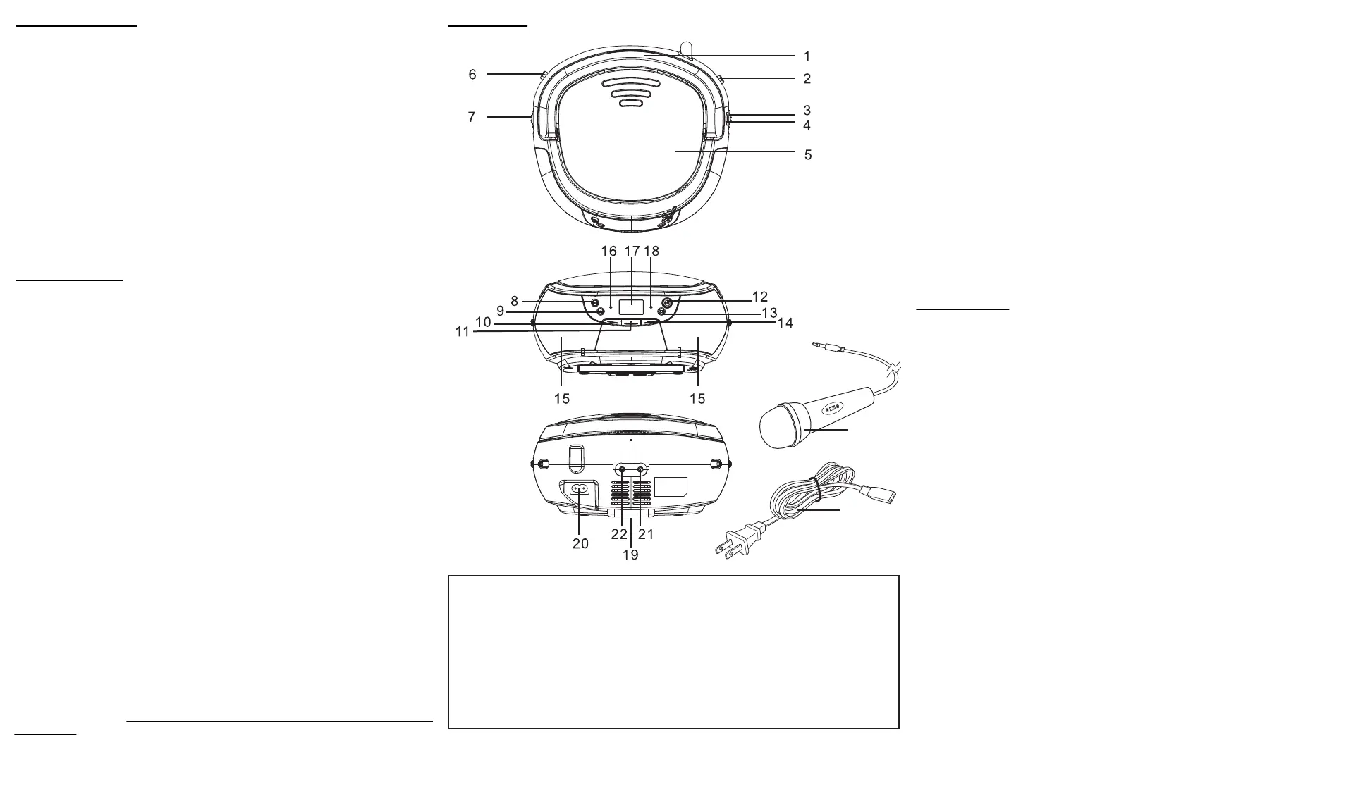 This unit provides one 3.5mm Mic Jack for Karaoke function. The microphone is