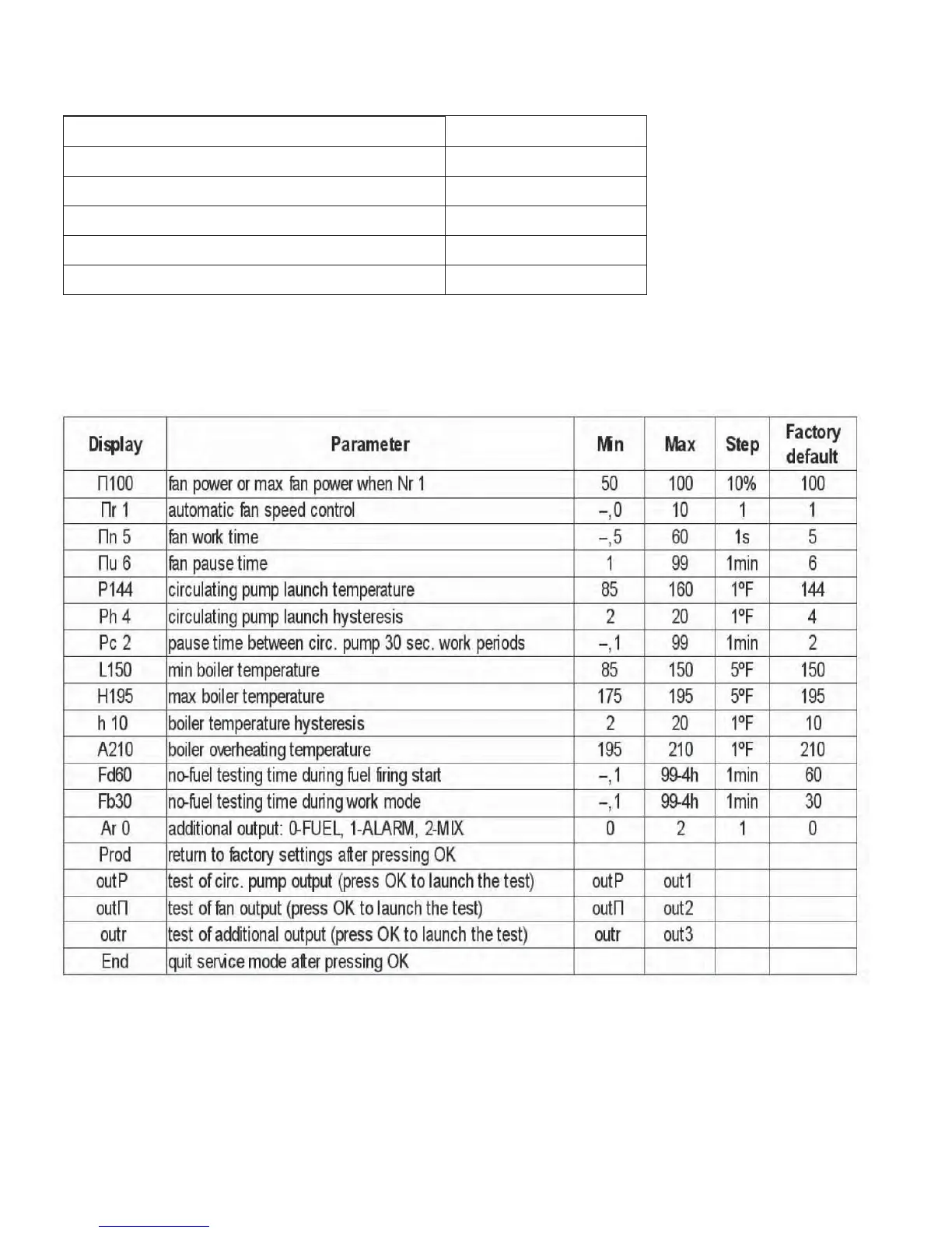 RK-2001UA Controller Service Parameters
