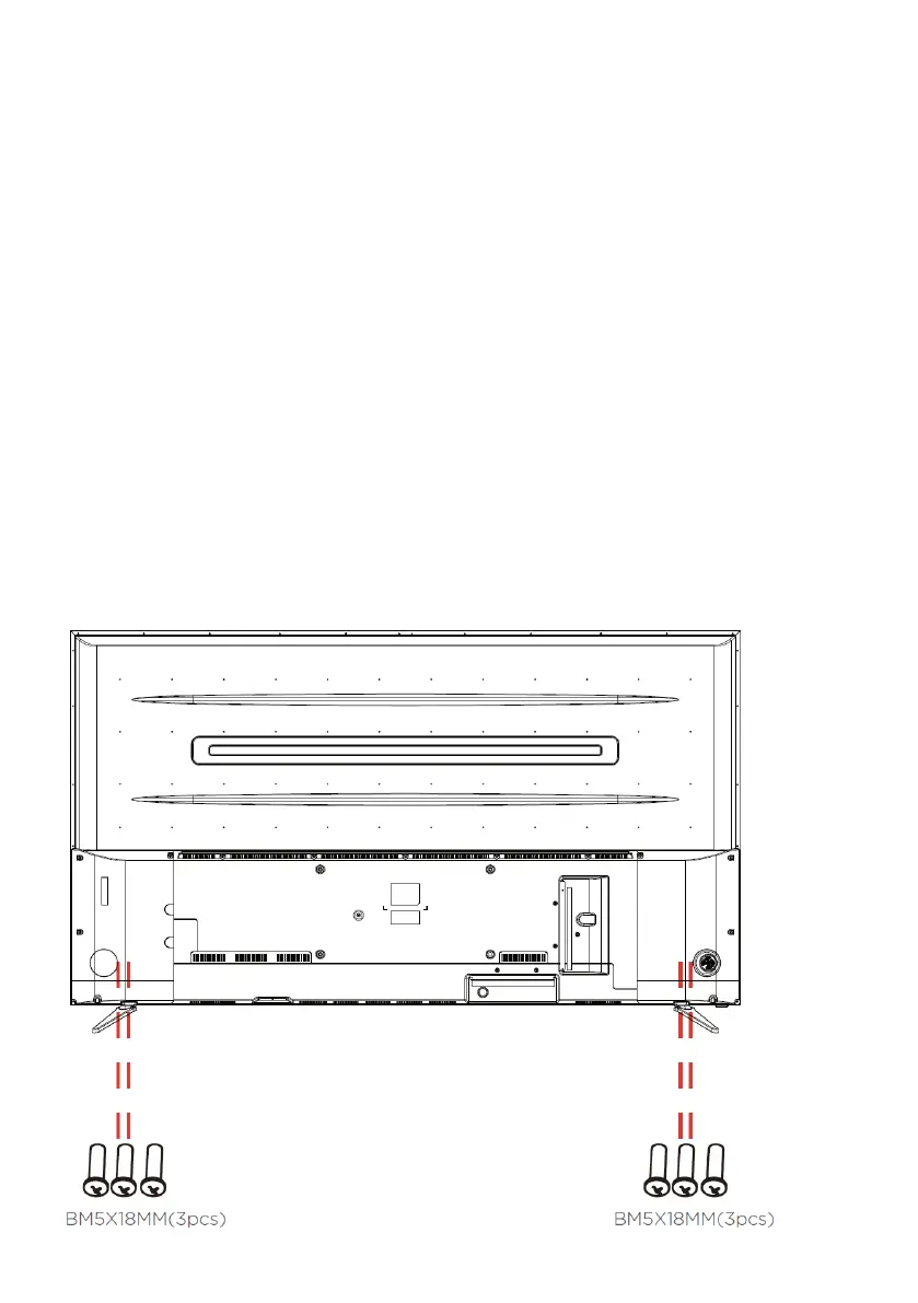 panel. Then place the TV screen flat on top, with the screen side facing down, as illustrated