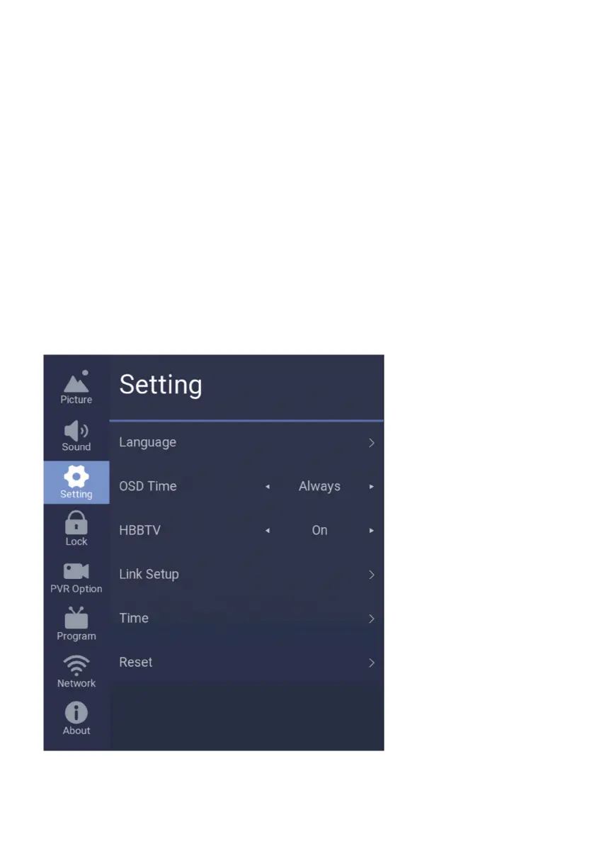 HBBTV: Turn on or turn o HBBTV Function.