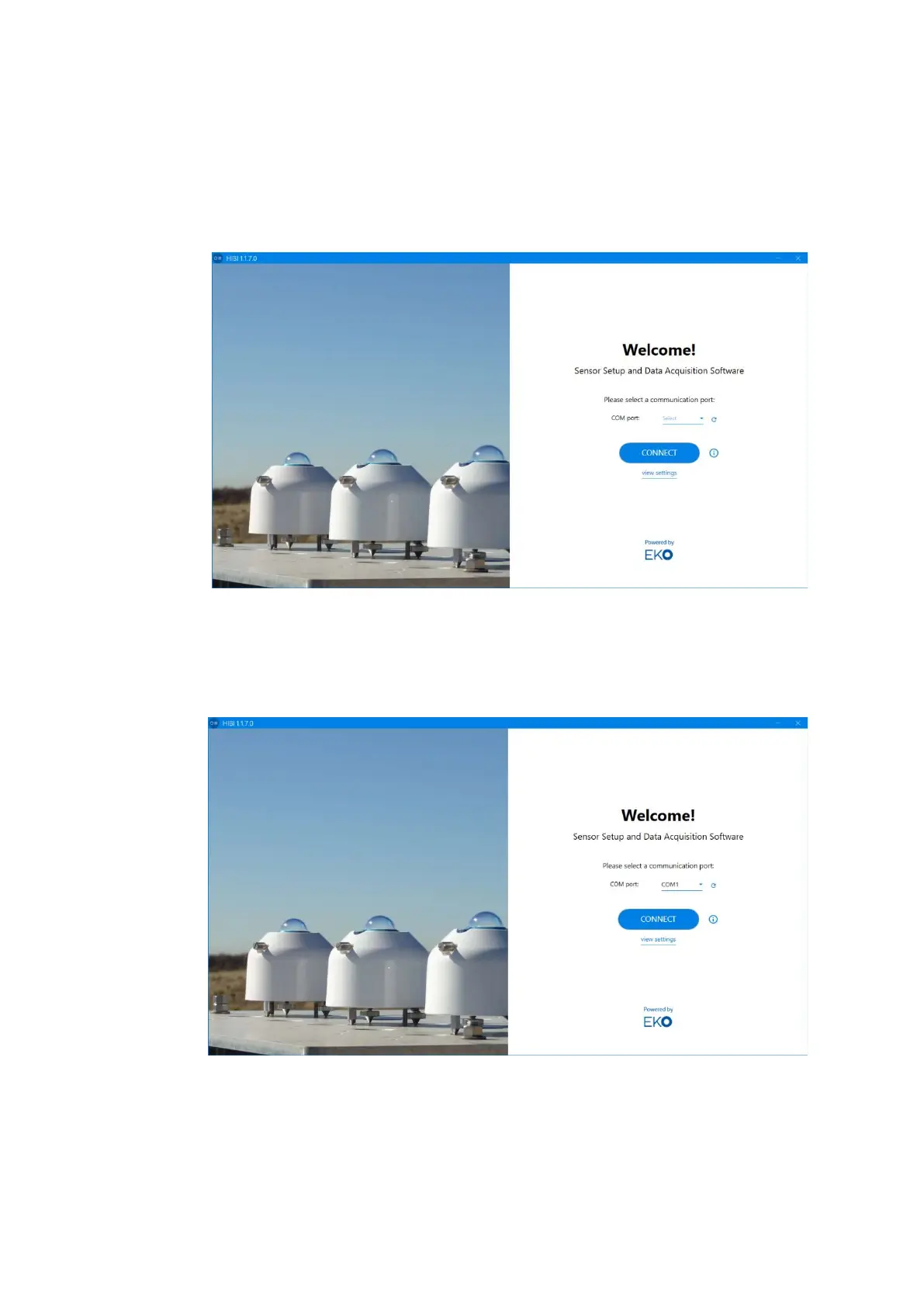 1) Start “Hibi” software. (Launch the software from “EKOApp1.exe” located in the shortcuts or installation
