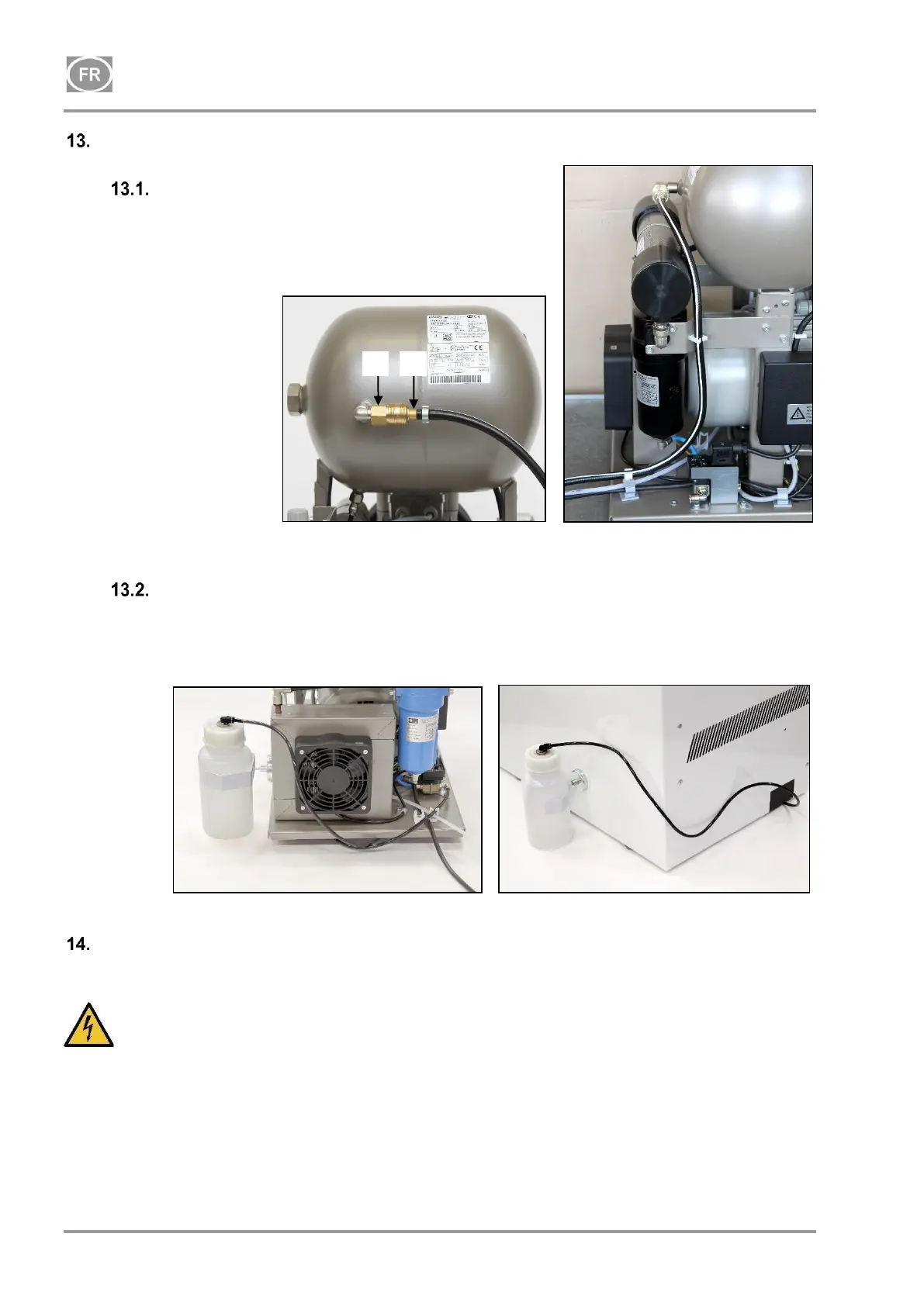 Raccordez le tuyau de vidange à la cuve du condensat sur les compresseurs avec sécheurs.