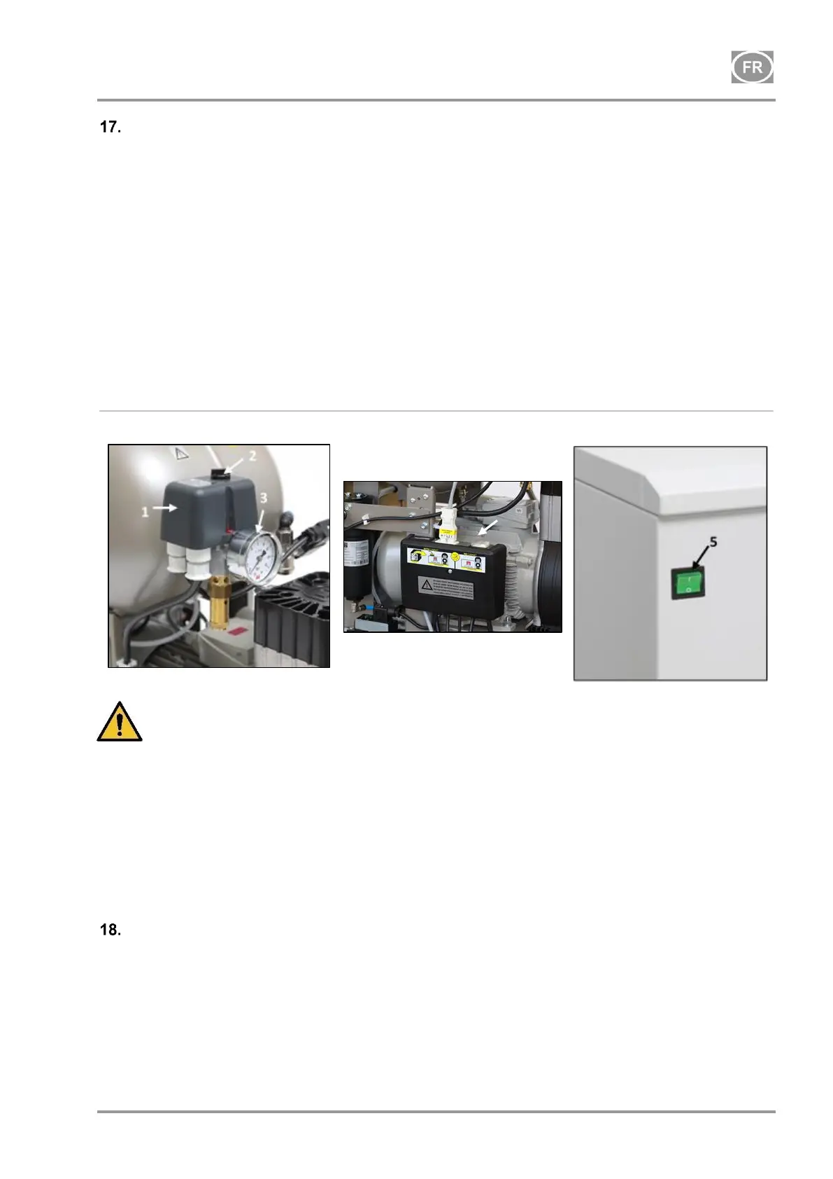 la position « I ». Le compresseur démarre et remplit le réservoir jusqu’à la pression d’arrêt, ce qui
