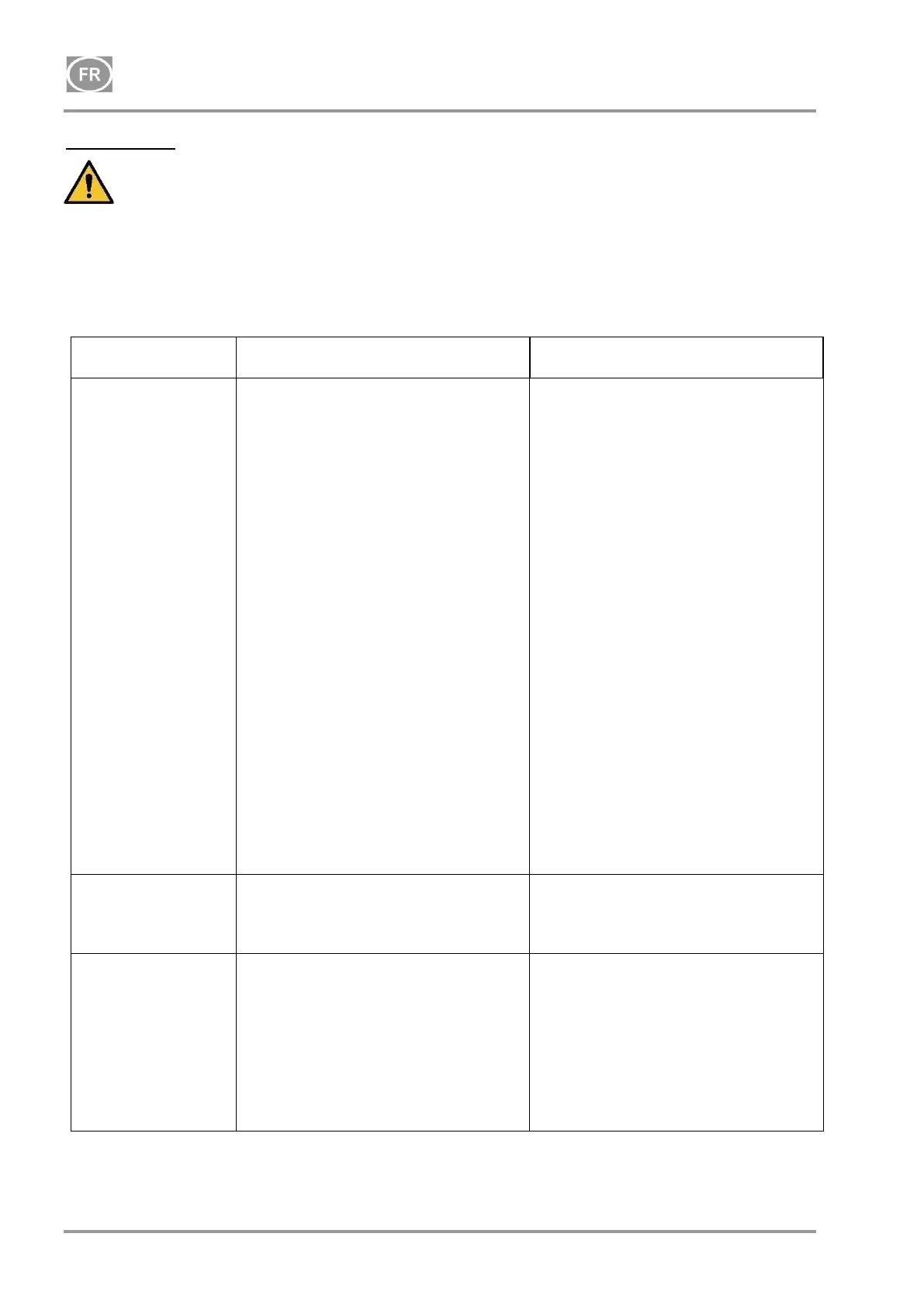 Les travaux de dépannage ne peuvent qu’être effectués par un technicien qualifié.