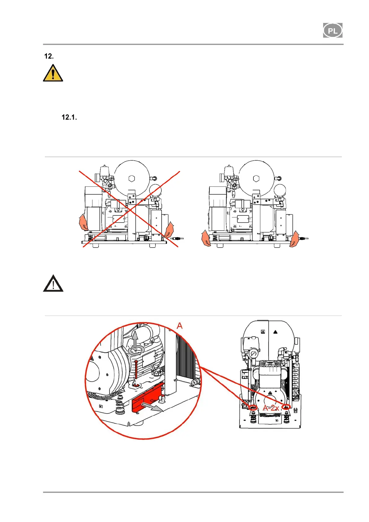 usunąć wszystkie elementy zabezpieczające agregaty sprężarki!