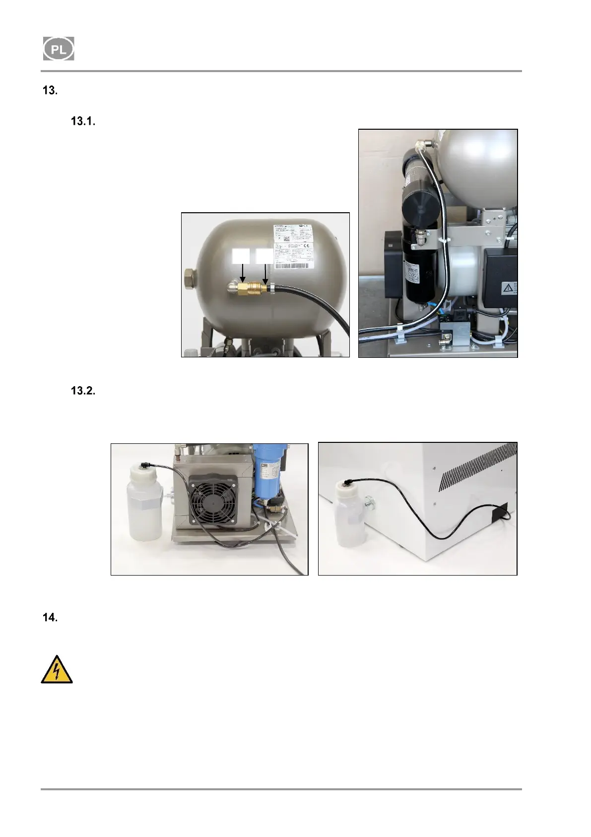 W przypadku sprężarki z osuszaczem podłącz przewód spustowy do naczynia na kondensat.