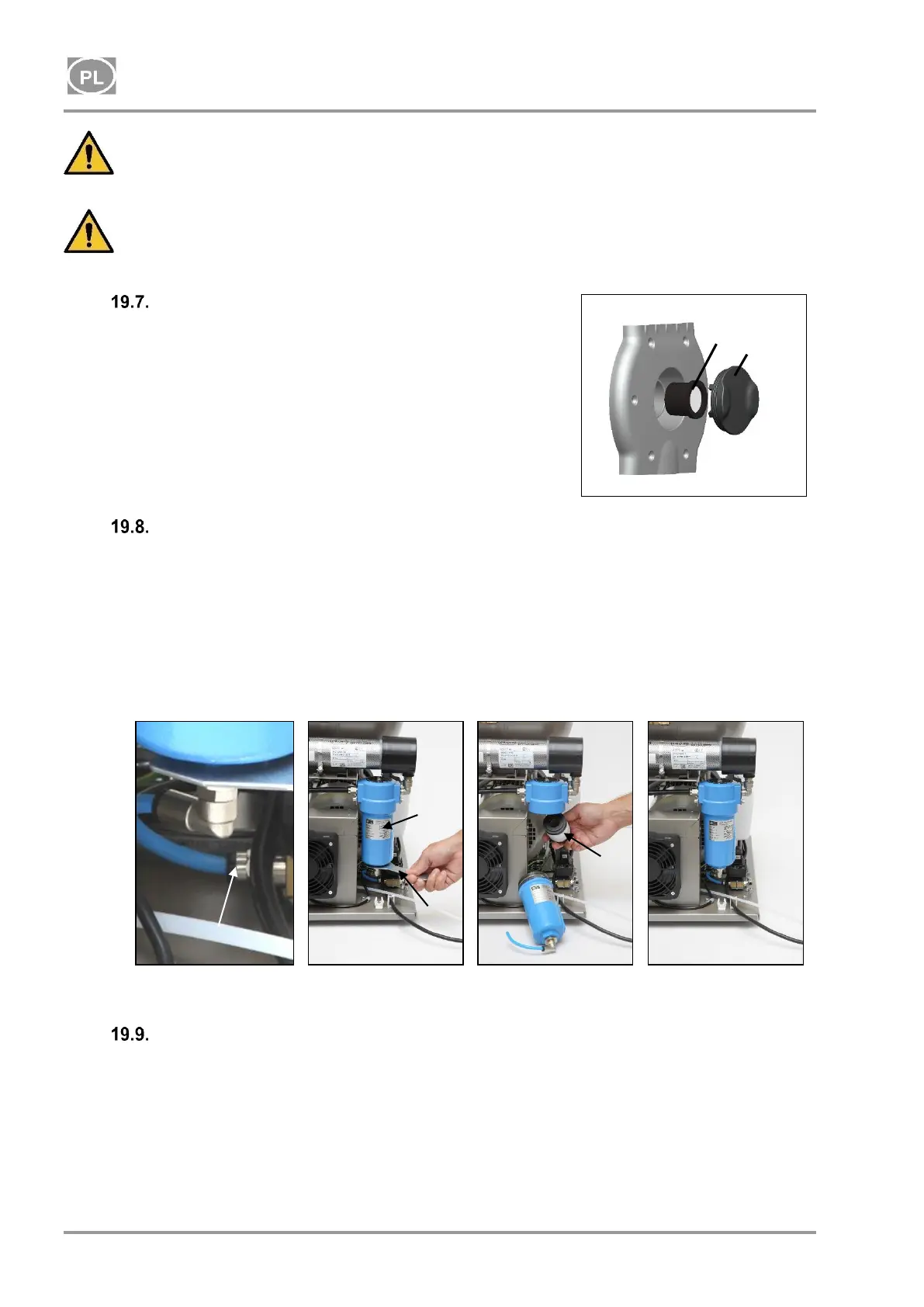 Dokręcić delikatnie naczynie filtracyjne za pomocą klucza.