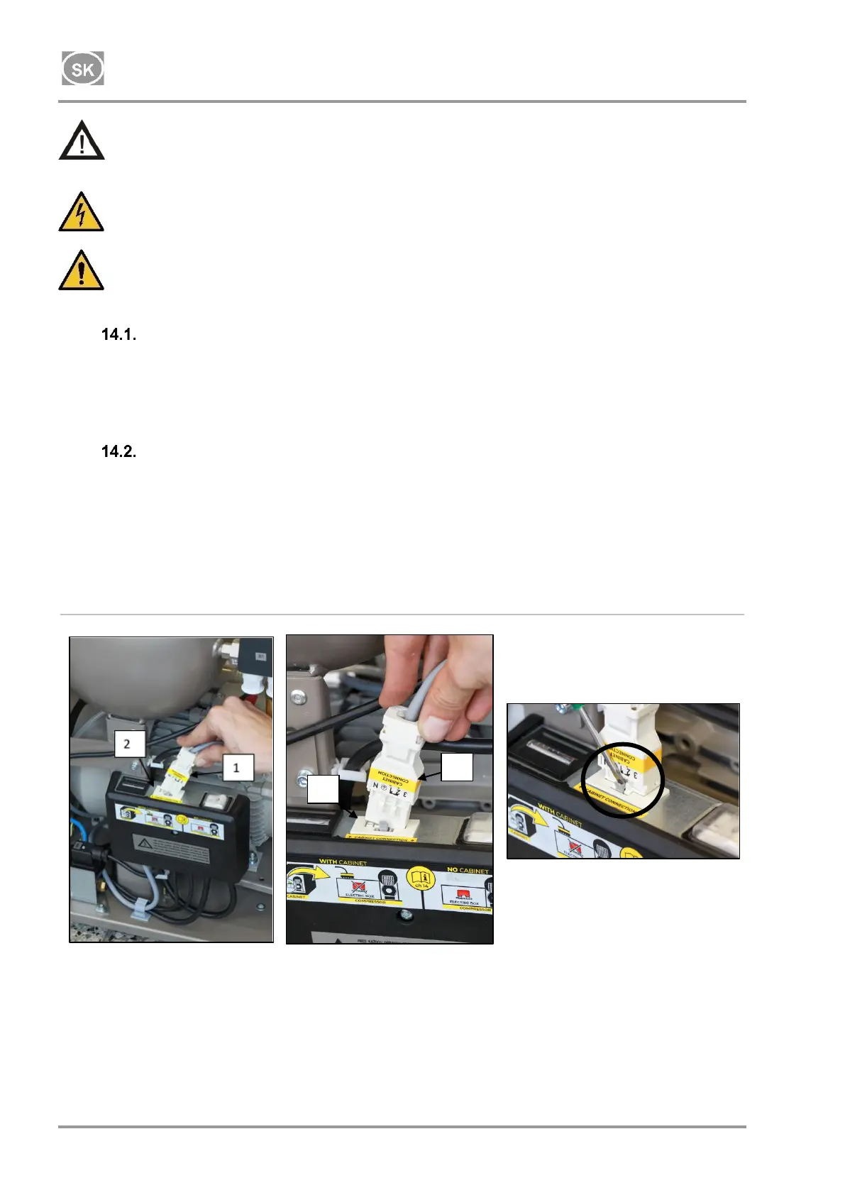 Skrinku elektricky odpojiť od kompresora vytiahnutím konektora (1) zo zásuvky pri uvoľnenej