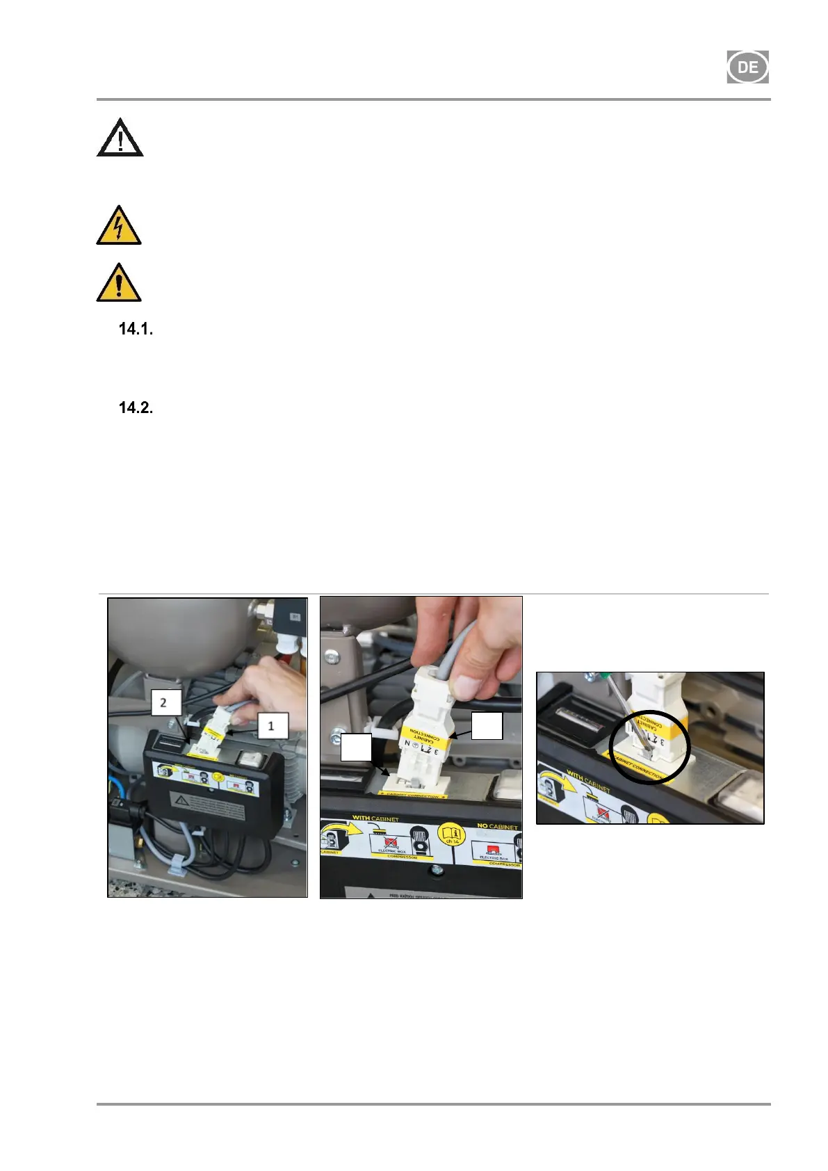 Unterbrechen Sie die den elektrischen Anschluss zwischen Schaltschrank und Kompressor,