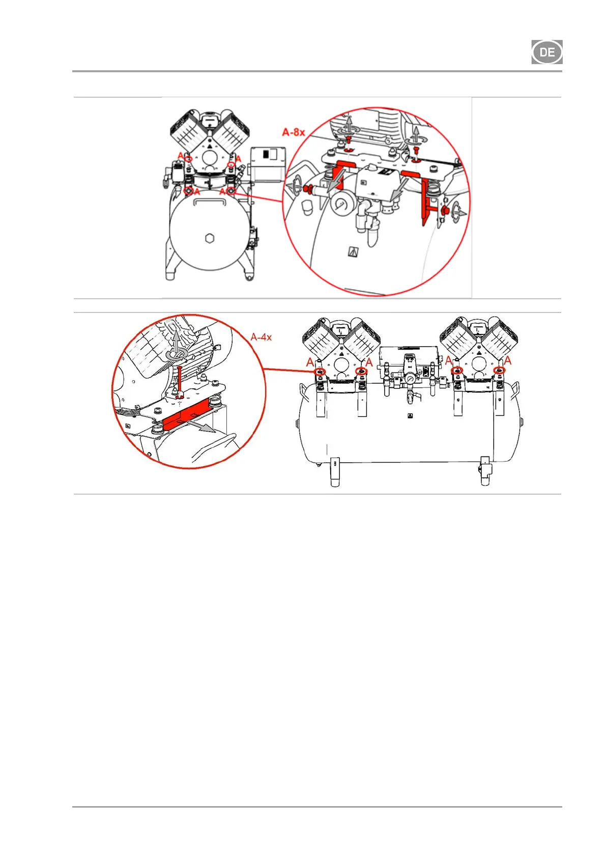 Bevor Sie den Kompressor ohne den Trockner (DK50 2V/50) in das Gehäuse einsetzen,