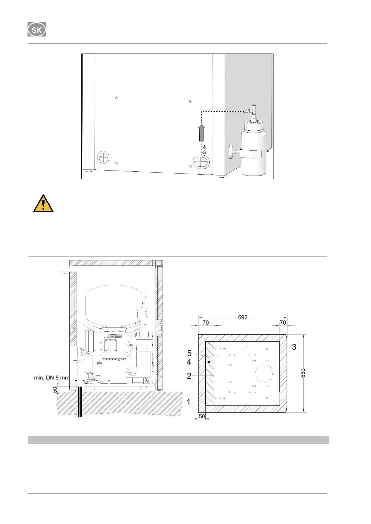 Kompresor zapojiť cez vopred pripravené rozvody v podlahe podľa inštalačného plánu.